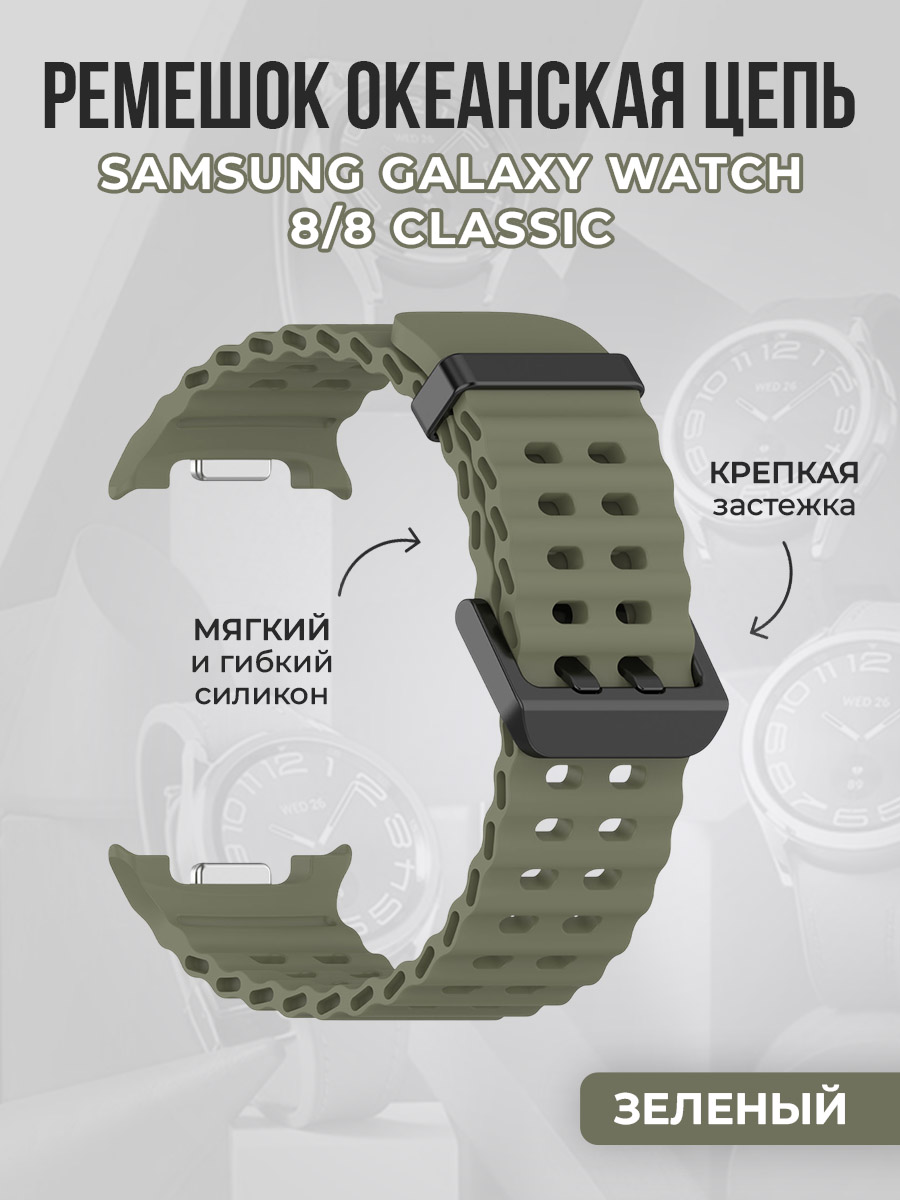 Дышащий силиконовый ремешок океанская цепь для Samsung Galaxy Watch 8/8 Classic, зеленый