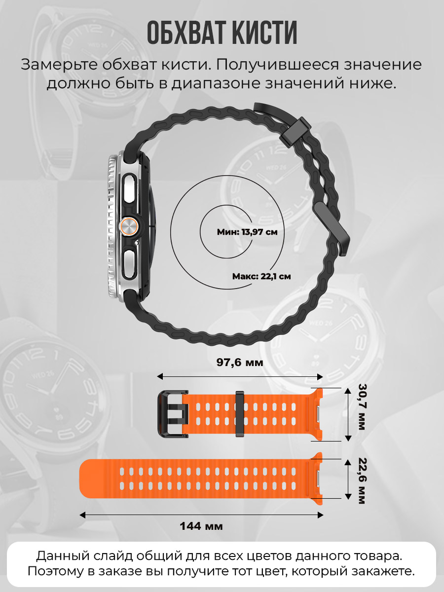 Совместимость и посадка. Ремешок разработан для моделей самсунг галакси воч 8 и Гелекси вотч 8 Classic, прекрасно сочетается с корпусами разных диаметров и толщин. Он легко устанавливается и снимается без риска повредить часы. Если вы ищете дополнительные варианты для вашего набора аксессуаров, обратите внимание на форм-фактор 8 Classic — ремешок сохраняет пропорции и гармонично дополняет общий стиль часов. Ваша коллекция часов будет выглядеть цельной и элегантной благодаря сдержанному, но выразительному дизайну.