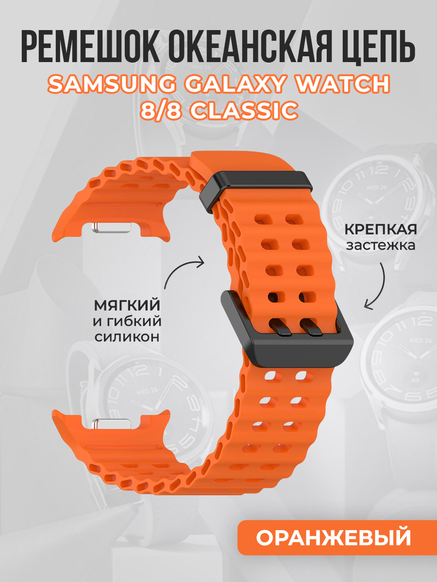 Дышащий силиконовый ремешок океанская цепь для Samsung Galaxy Watch 8/8 Classic, оранжевый