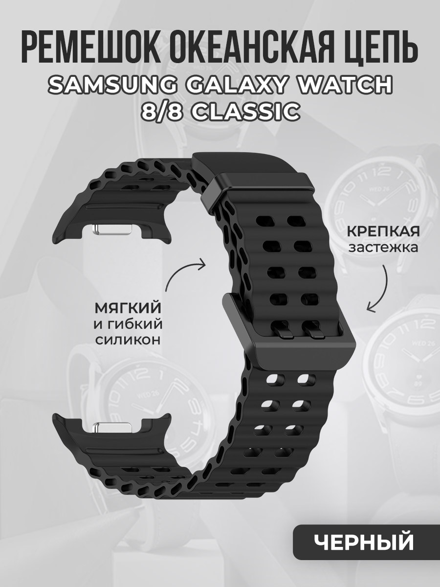 Дышащий силиконовый ремешок океанская цепь для Samsung Galaxy Watch 8/8 Classic, черный