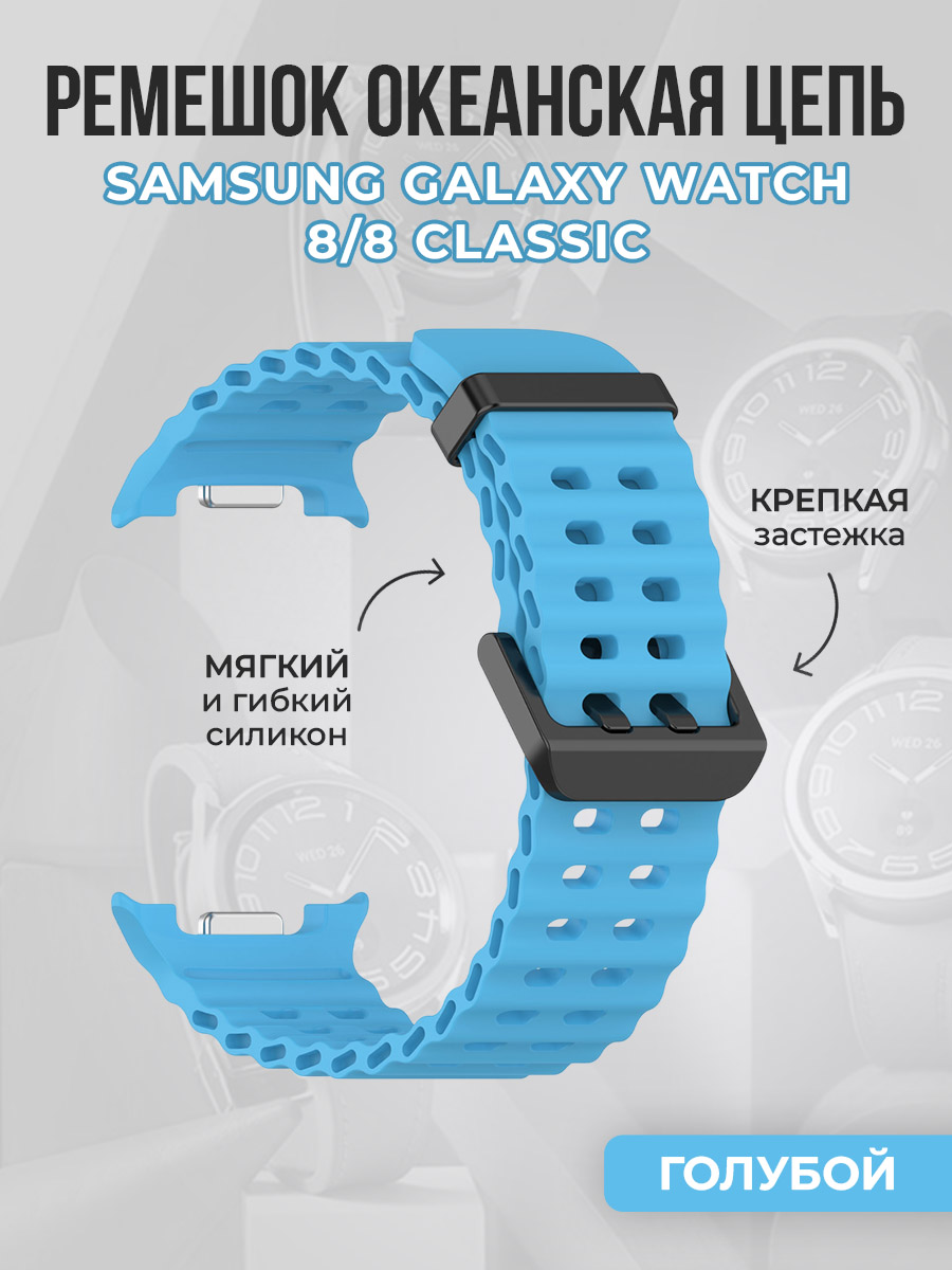 Дышащий силиконовый ремешок океанская цепь для Samsung Galaxy Watch 8/8 Classic, голубой