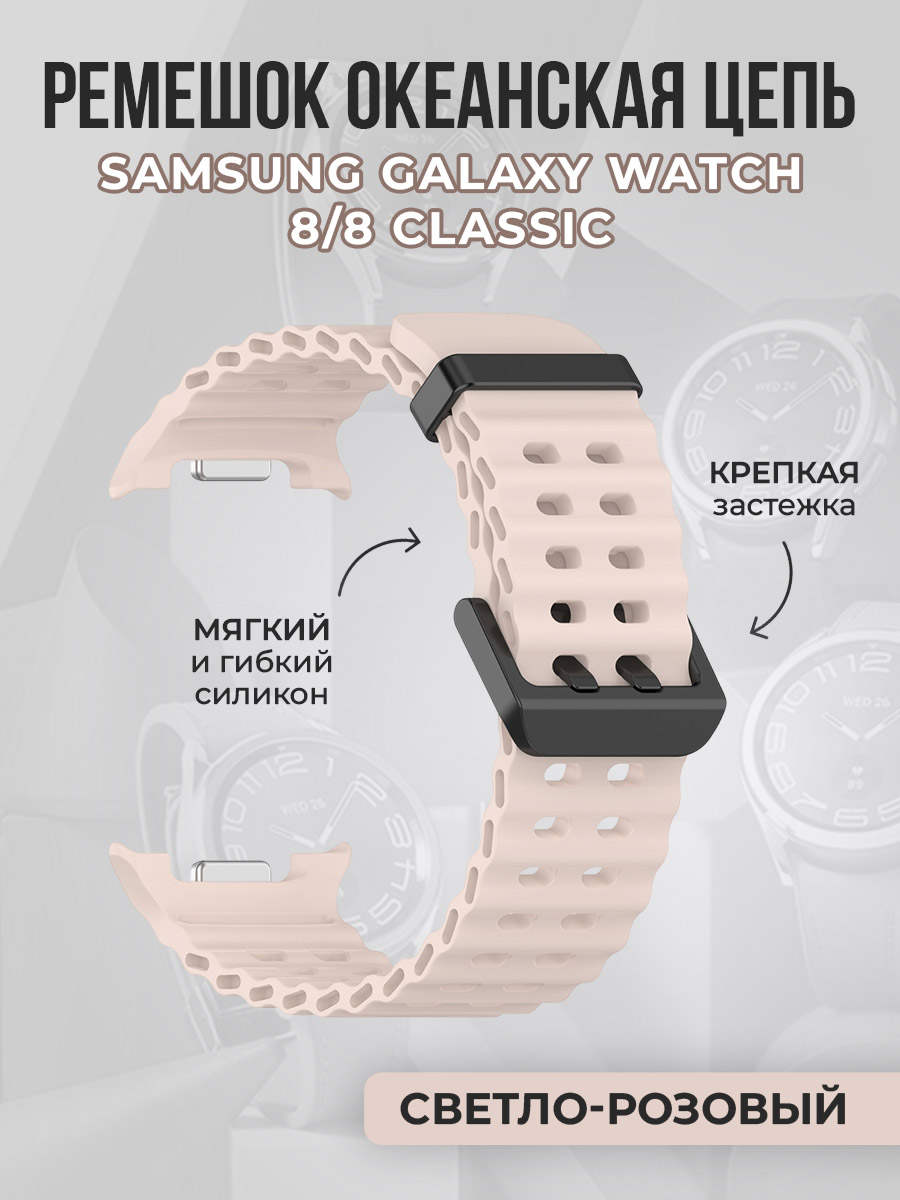 Дышащий силиконовый ремешок океанская цепь для Samsung Galaxy Watch 8/8 Classic, светло-розовый