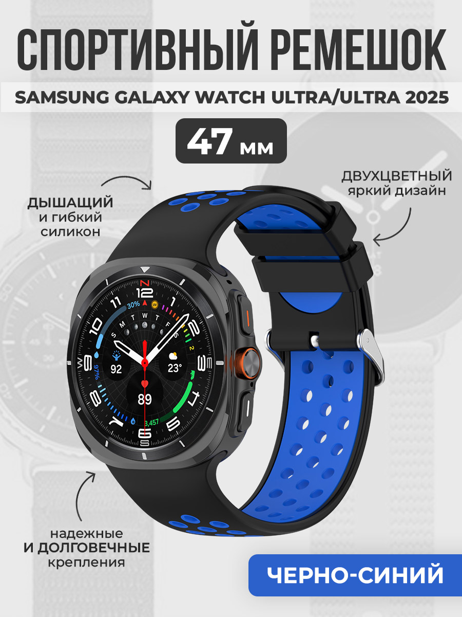 Спортивный двухцветный ремешок для Samsung Galaxy Watch Ultra/Ultra 2025, 47 мм, черно-синий