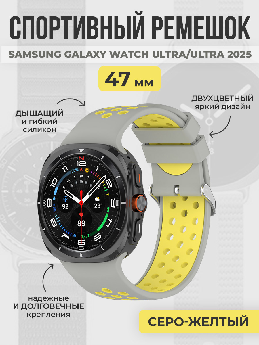 Спортивный двухцветный ремешок для Samsung Galaxy Watch Ultra/Ultra 2025, 47 мм, серо-желтый