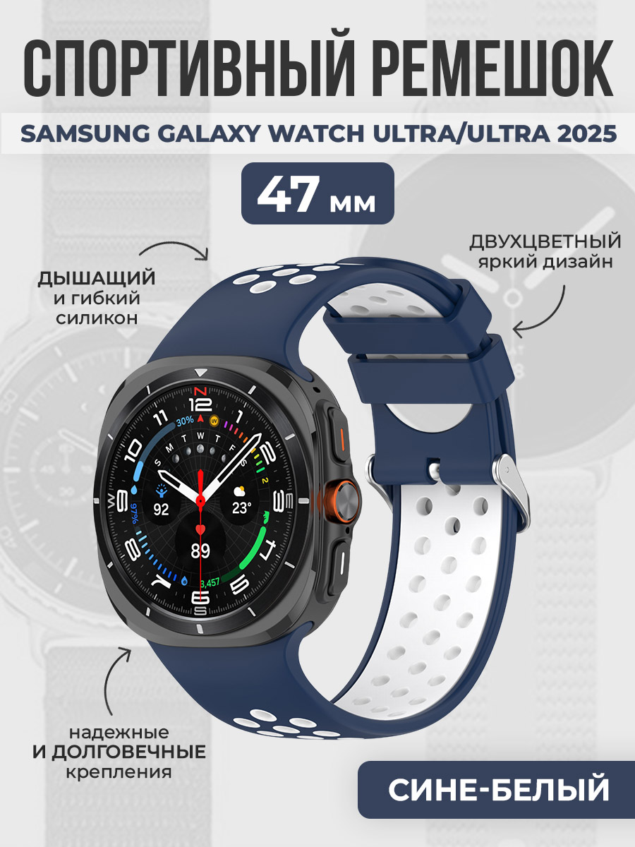 Спортивный двухцветный ремешок для Samsung Galaxy Watch Ultra/Ultra 2025, 47 мм, сине-белый