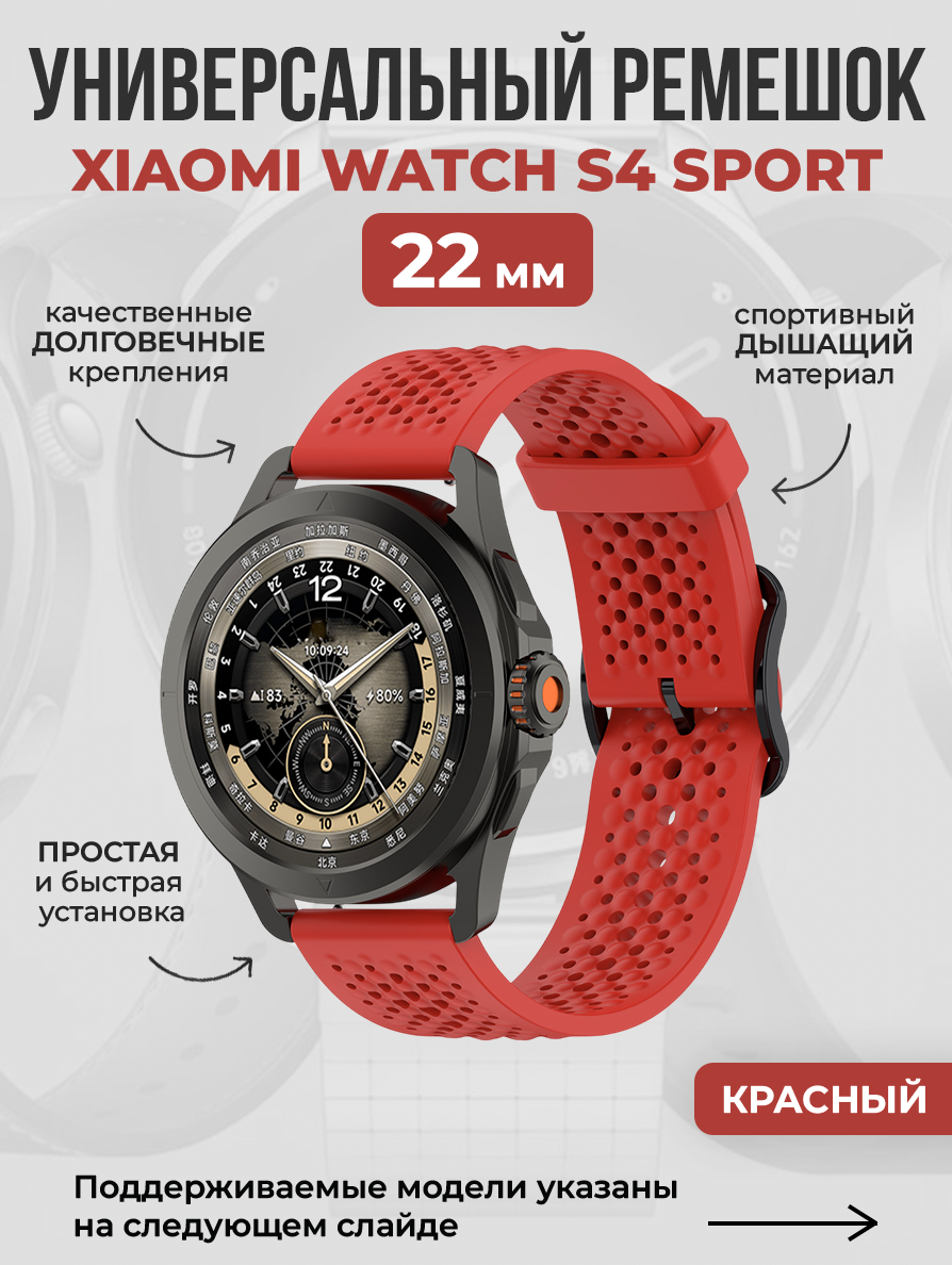 Универсальный спортивный дышащий ремешок для Xiaomi Watch S4 Sport, 22мм, красный