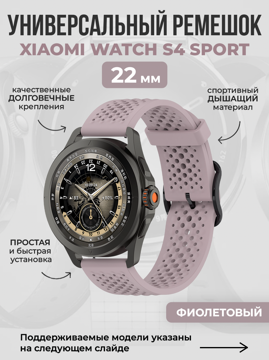 Универсальный спортивный дышащий ремешок для Xiaomi Watch S4 Sport, 22мм, фиолетовый