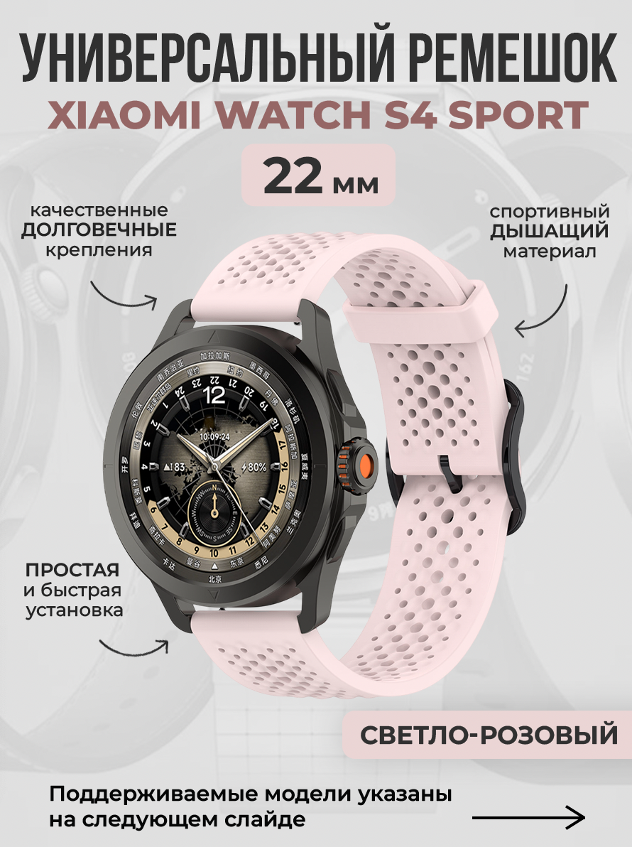 Универсальный спортивный ремешок для Xiaomi Watch S4 Sport, 22 мм — идеальное сочетание функциональности, стиля и долговечности. Этот ремешок разработан для тех, кто ценит комфорт в повседневной жизни и активные тренировки, а также для путешествий и активного отдыха. Он подходит к любому образу: от утренней пробежки до деловой встречи, где важна аккуратность и строгий внешний вид.