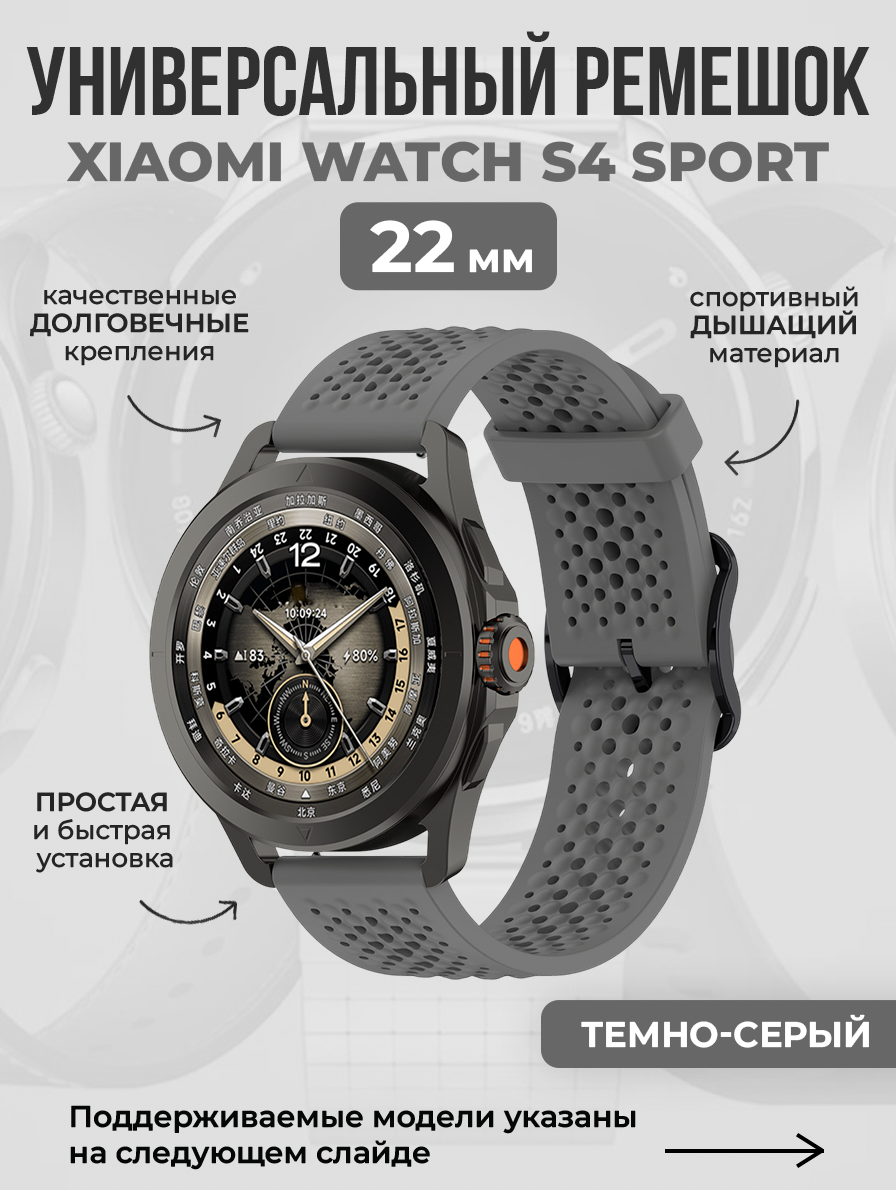 Универсальный спортивный дышащий ремешок для Xiaomi Watch S4 Sport, 22мм, темно-серый