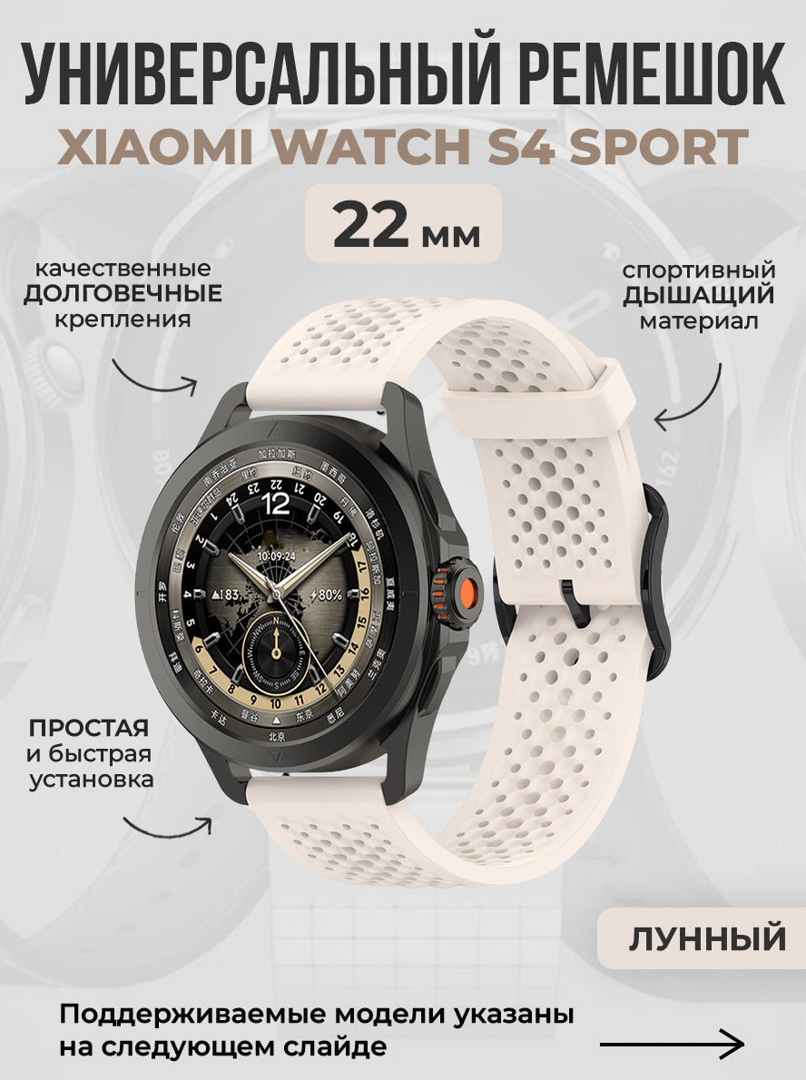 Универсальный спортивный ремешок для Xiaomi Watch S4 Sport, 22 мм — идеальное сочетание функциональности, стиля и долговечности. Этот ремешок разработан для тех, кто ценит комфорт в повседневной жизни и активные тренировки, а также для путешествий и активного отдыха. Он подходит к любому образу: от утренней пробежки до деловой встречи, где важна аккуратность и строгий внешний вид.
