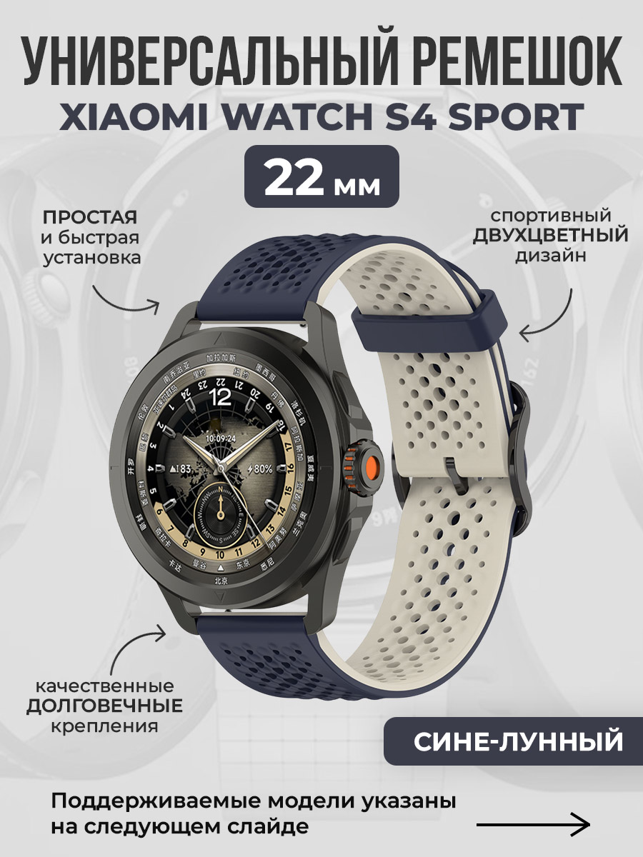 Универсальный спортивный ремешок для Xiaomi Watch S4 Sport, 22 мм — идеальное сочетание функциональности, стиля и долговечности. Этот ремешок разработан для тех, кто ценит комфорт в повседневной жизни и активные тренировки, а также для путешествий и активного отдыха. Он подходит к любому образу: от утренней пробежки до деловой встречи, где важна аккуратность и строгий внешний вид.
