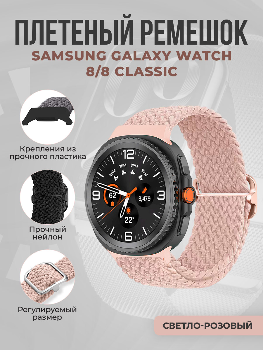 Плетёный нейлоновый ремешок для Samsung Galaxy Watch 8/8 Classic, светло-розовый
