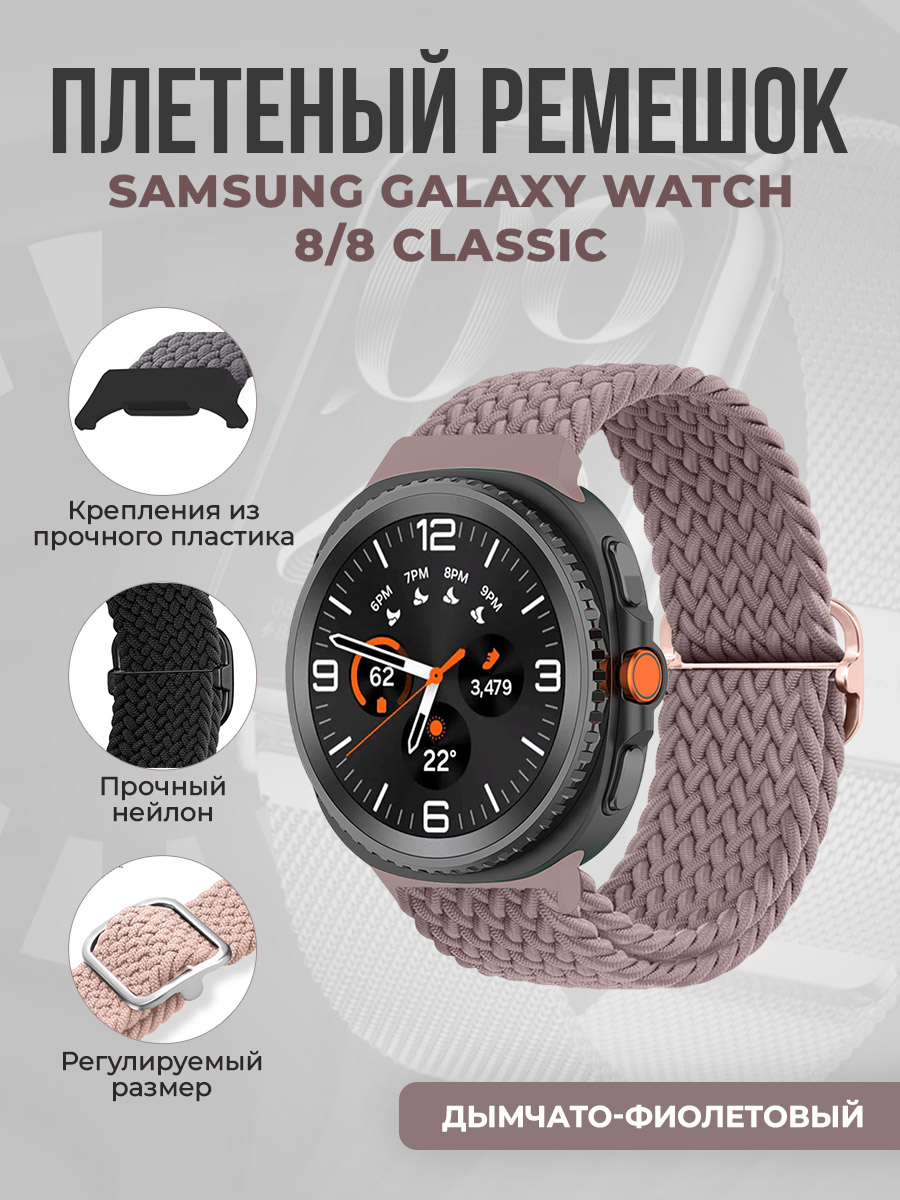 Плетёный нейлоновый ремешок для Samsung Galaxy Watch 8/8 Classic, дымчато-фиолетовый