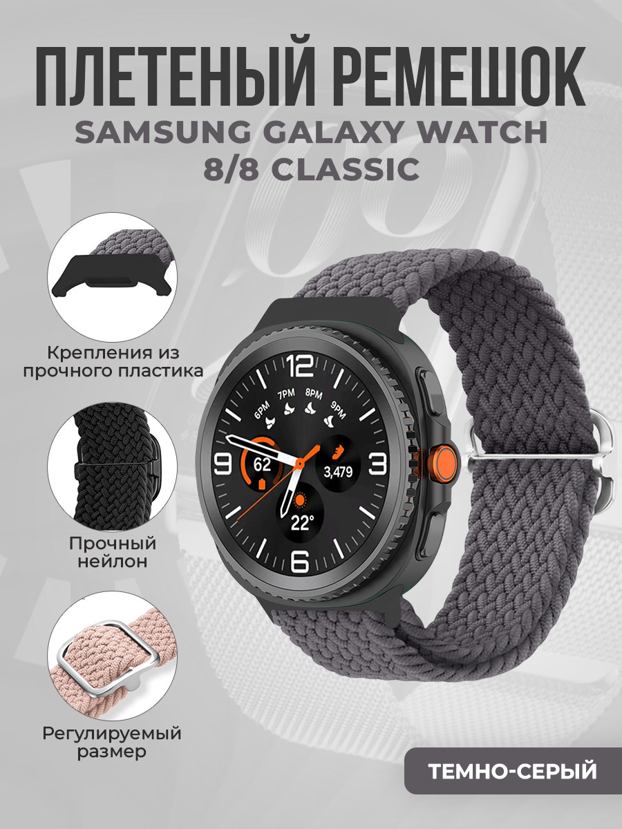 Плетёный нейлоновый ремешок для Samsung Galaxy Watch 8/8 Classic, темно-серый