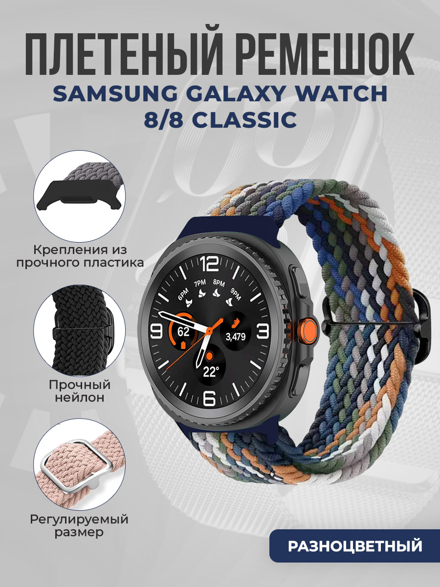 Плетёный нейлоновый ремешок для Samsung Galaxy Watch 8/8 Classic, разноцветный