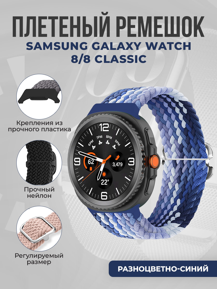 Плетёный нейлоновый ремешок для Samsung Galaxy Watch 8/8 Classic, разноцветно-синий