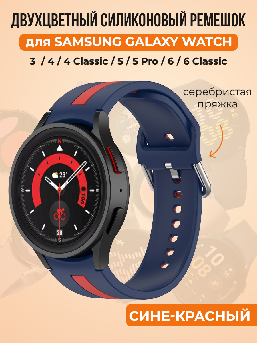 Двухцветный силиконовый ремешок для Samsung Galaxy Watch 4/5/6, сине-красный
