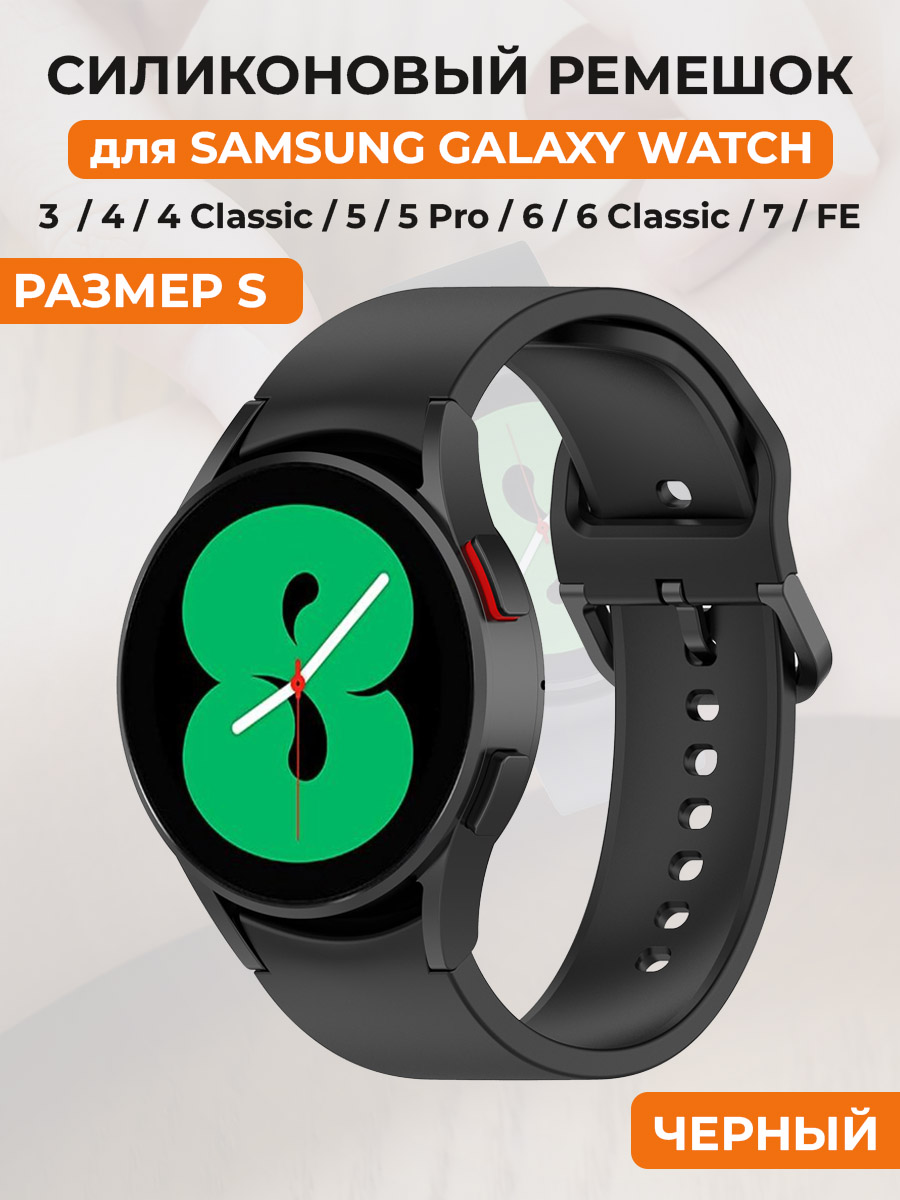 Силиконовый ремешок для Samsung Galaxy Watch 3/4/5/6/7/FE, пряжка в цвет ремешка, размер S, черный