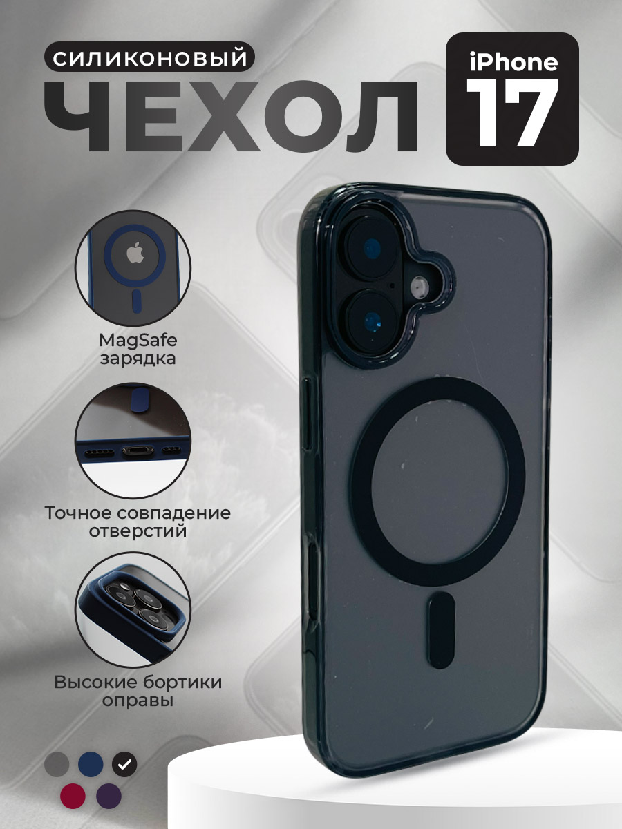 Прозрачный чехол с глянцевой рамкой для iPhone 17, MagSafe, черный
