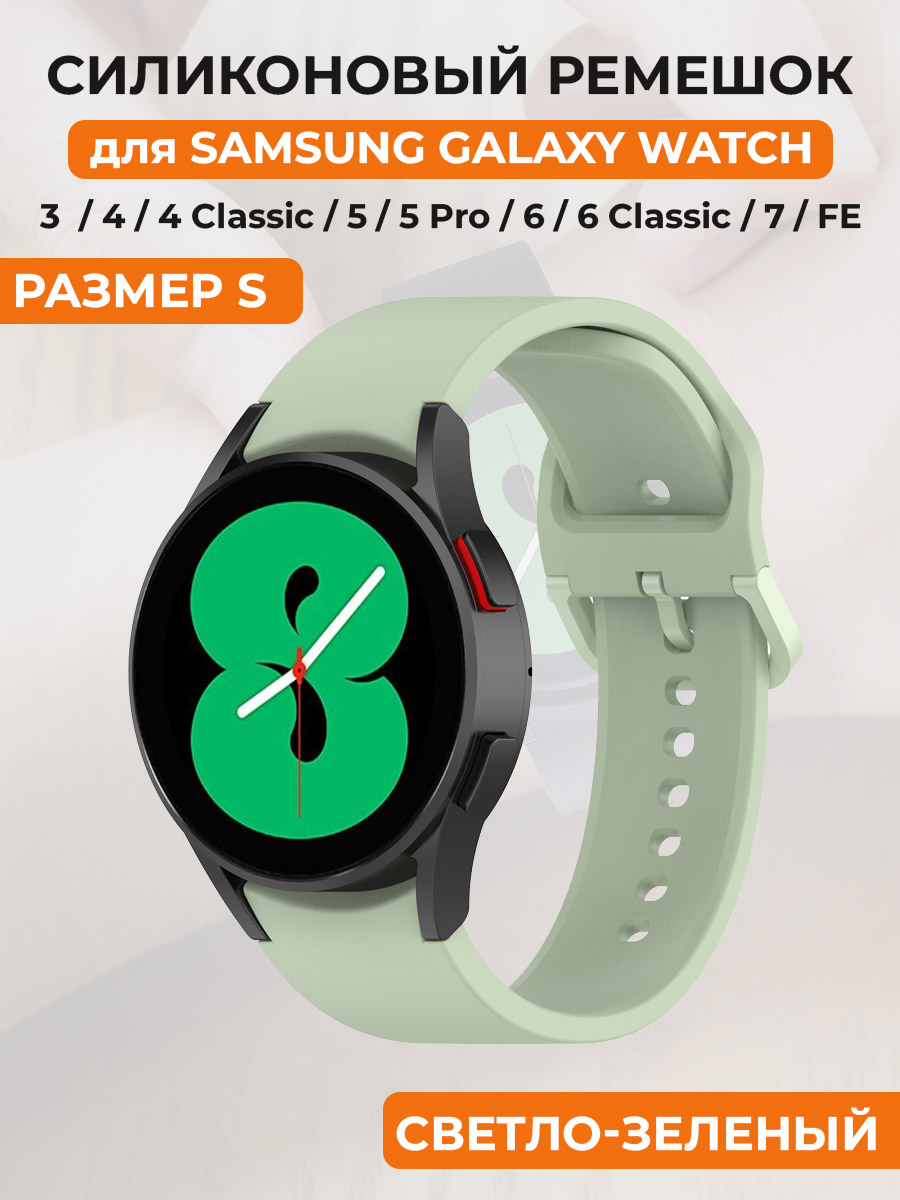 Силиконовый ремешок для Samsung Galaxy Watch 3/4/5/6/7/FE, пряжка в цвет ремешка, размер S, светло-зеленый