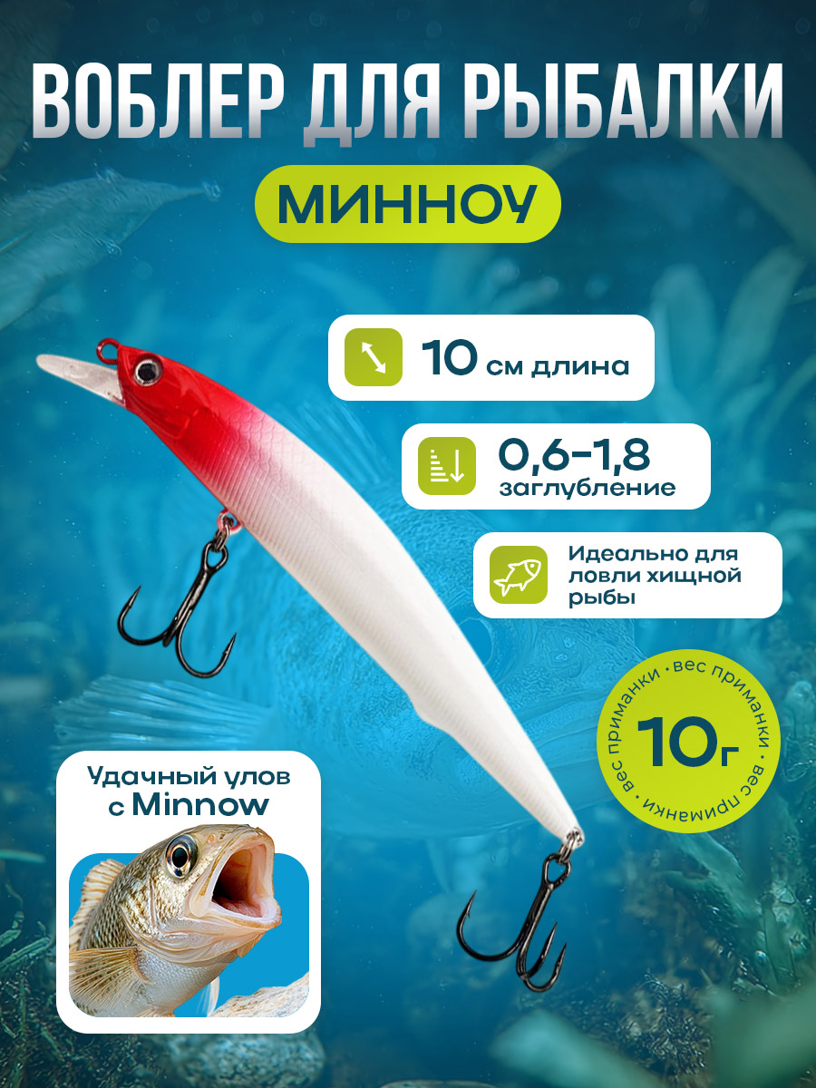 Рыболовная приманка "Минноу" — для дальнего заброса, суспендинговые, минноу, с системой утяжеления и тройными крючками для окуня и верблюда-арапуса, 10 см/10 г представляют собой современное решение для противостояния любым условиям водоема и достижения максимальной результативности на рыбалке. Эта приманка рассчитана на дальний заброс и стабильную игру на протяжении всей проводки, что делает ее незаменимым инструментом как для опытных рыболовов, так и для начинающих, стремящихся освоить технику ловли на минноу с эффективной глубинной постановкой. В основе конструкции лежит продуманная система утяжеления, которая обеспечивает идеальное соотношение объемной плавучести и массы, позволяя маневрировать приманкой на заданной глубине даже при сильном течении и ветре. Благодаря суспендинговой характеристике приманка занимает нейтральное положение в воде между поверхностью и донной частью водоема, что позволяет максимально естественно повторять игру раненой или раненой добычи и привлекать внимание рыбы с разных уровней вертикали.
