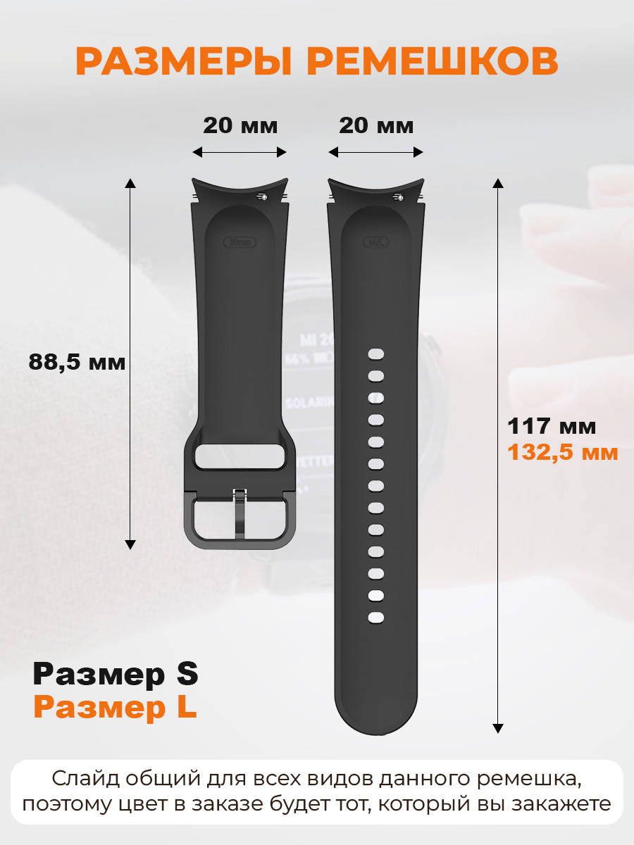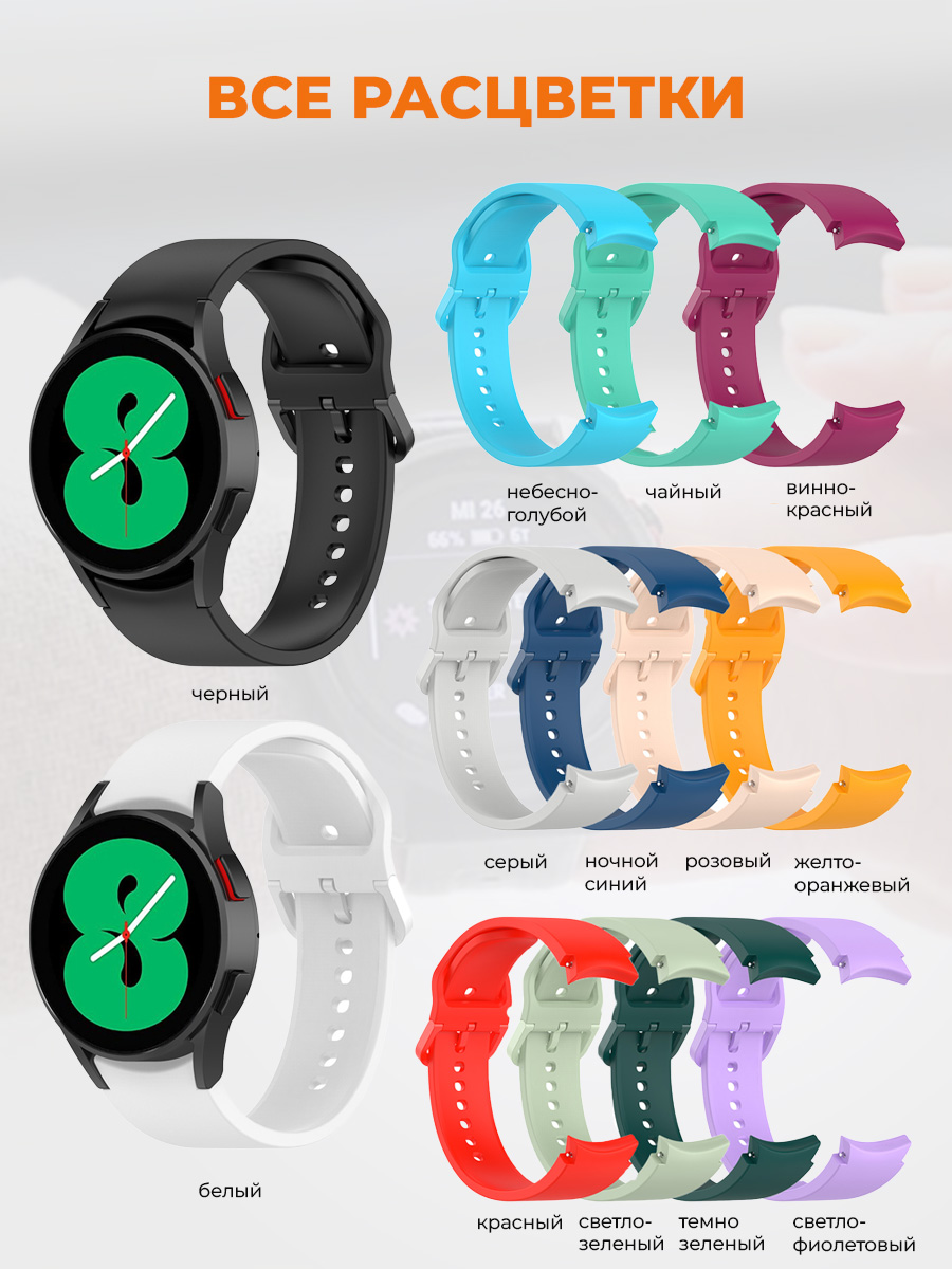 Силиконовый ремешок для Samsung Galaxy Watch 3/4/5/6/7/FE с пряжкой в цвет ремешка, который станет отличным дополнением к вашему смарт-часам. Этот galaxy watch 6 ремешок выполнен из гипоаллергенного силикона, что делает его идеальным выбором для ежедневного использования, занятия спортом, фитнесом и sport active или повседневной носки.