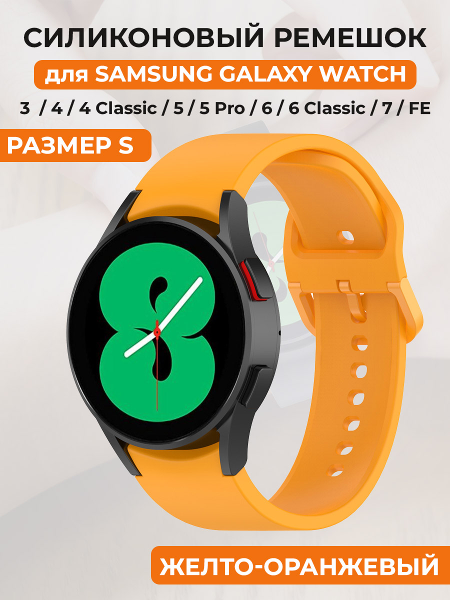 Силиконовый ремешок для Samsung Galaxy Watch 3/4/5/6/7/FE, пряжка в цвет ремешка, размер S, желто-оранжевый