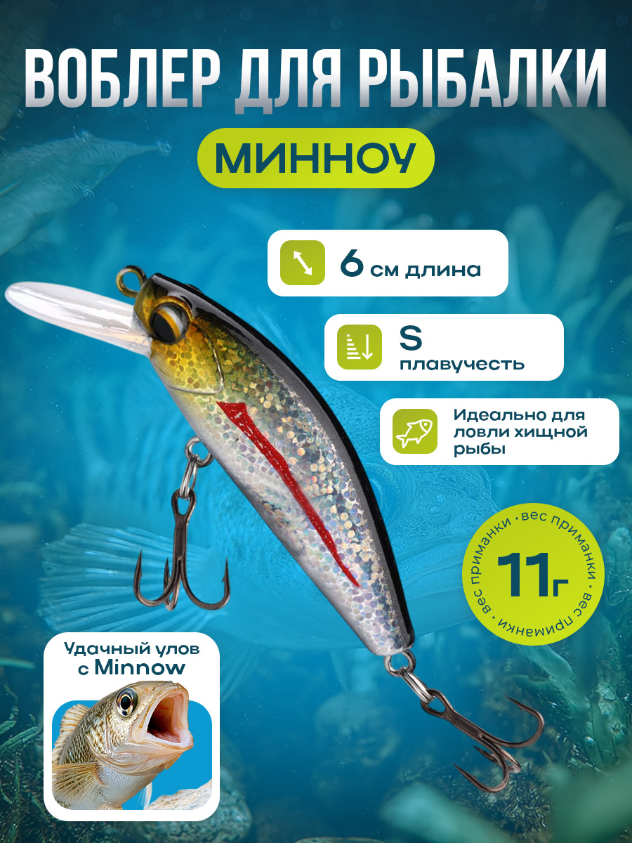 Приманка Minnow класса "Тонущие (sinking) - S" размером и весом 6 см/11 г.- предназначена для дальнего заброса и эффективной игры в широком диапазоне глубин, что позволяет рыбакам уверенно работать на больших дистанциях и достигать хорошо удерживаемых точек на водоеме. Ее жесткая конструкция обеспечивает прочную и долговечную работу даже при интенсивной проводке и условиях, требующих высокой прочности узлов и креплений. Внутренняя идея модели — обеспечить надежное погружение и стабильную подводку к объекту ловли, сохраняя при этом естественный горизонтальный профиль, который можно легко адаптировать под различные режимы проводки. Тонущий характер приманки обеспечивает глубокое проникновение в толщу воды, позволяя охватывать более глубокие слои и учитывать особенности течения и рельефа дна.Важно отметить, что данная приманка спроектирована с упором на реалистичную игру — имитацию движения молодой рыбы, которая характерна для обитателя водоема, где встречаются щука, судак и некоторые другие хищники. В процессе ловли приманка демонстрирует плавное чередование быстрого и медленного темпа проводки, что имитирует поведение раненной или уходящей от хищника рыбки, провоцируя атаку. Указанные характеристики делают эту тонущую Minnow особенно удачным выбором для рыбалки на дальних дистанциях в условиях больших водоемов, где требуются стабильность, дальность заброса и надежная игра на протяжении всей проводки.