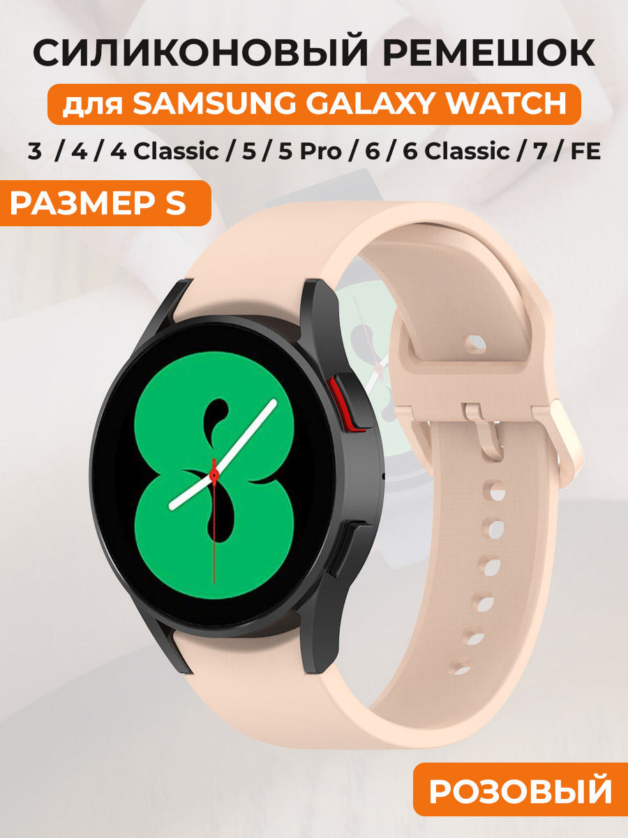 Силиконовый ремешок для Samsung Galaxy Watch 3/4/5/6/7/FE, пряжка в цвет ремешка, размер S, розовый
