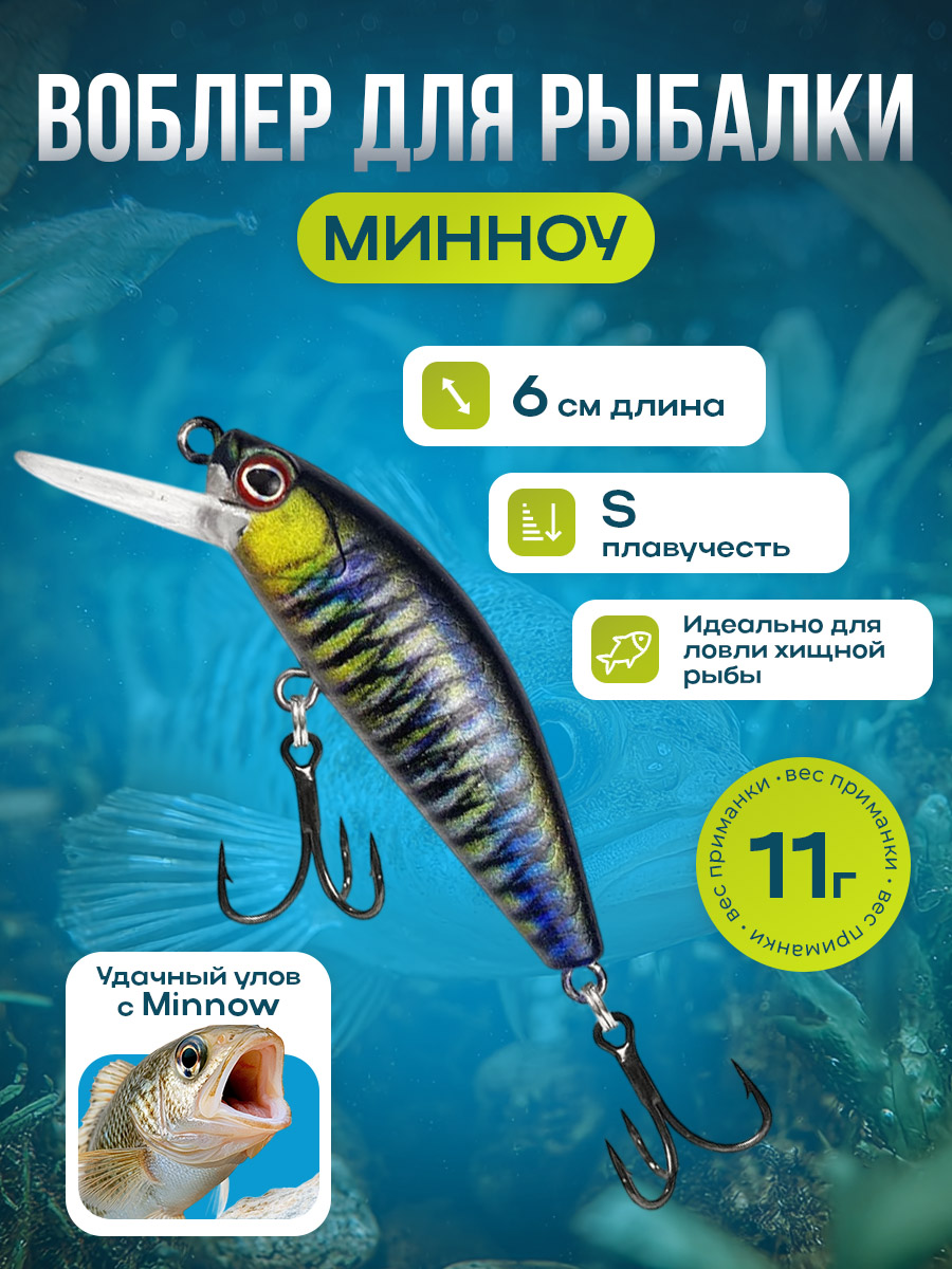Приманка Minnow класса "Тонущие (sinking) - S" размером и весом 6 см/11 г.- предназначена для дальнего заброса и эффективной игры в широком диапазоне глубин, что позволяет рыбакам уверенно работать на больших дистанциях и достигать хорошо удерживаемых точек на водоеме. Ее жесткая конструкция обеспечивает прочную и долговечную работу даже при интенсивной проводке и условиях, требующих высокой прочности узлов и креплений. Внутренняя идея модели — обеспечить надежное погружение и стабильную подводку к объекту ловли, сохраняя при этом естественный горизонтальный профиль, который можно легко адаптировать под различные режимы проводки. Тонущий характер приманки обеспечивает глубокое проникновение в толщу воды, позволяя охватывать более глубокие слои и учитывать особенности течения и рельефа дна.Важно отметить, что данная приманка спроектирована с упором на реалистичную игру — имитацию движения молодой рыбы, которая характерна для обитателя водоема, где встречаются щука, судак и некоторые другие хищники. В процессе ловли приманка демонстрирует плавное чередование быстрого и медленного темпа проводки, что имитирует поведение раненной или уходящей от хищника рыбки, провоцируя атаку. Указанные характеристики делают эту тонущую Minnow особенно удачным выбором для рыбалки на дальних дистанциях в условиях больших водоемов, где требуются стабильность, дальность заброса и надежная игра на протяжении всей проводки.