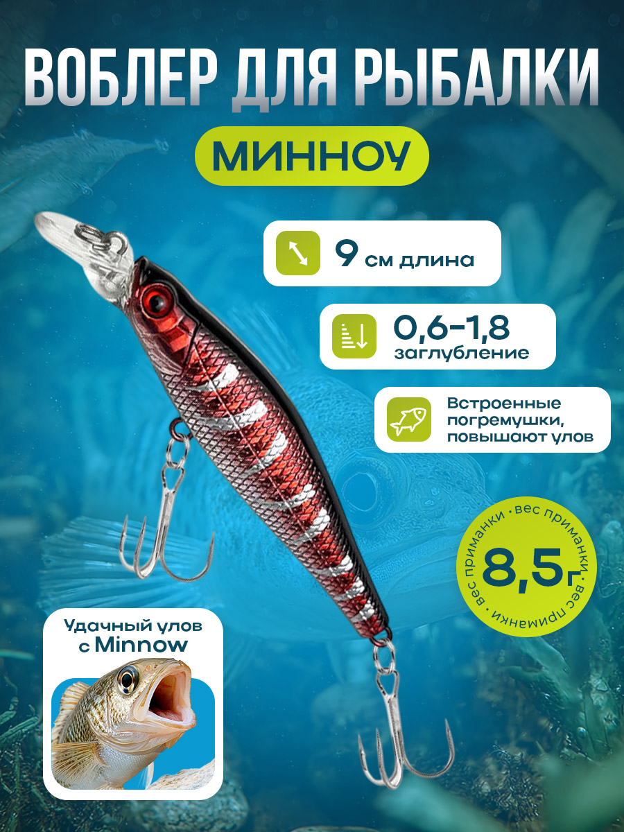 Наживка для дальнего заброса: суспендинговая приманка Minnow с гремящими бусинами, тройными крючками, 9 см, 8,5 г — это универсальное решение для рыбалки на дальние дистанции и в условиях переменной течения. Разработана для максимальной дальности заброса и стабильного поведения на разных слоях воды, что позволяет охватить широкий спектр хищников и условий ловли. Приманка выполнена в форме классического минноу, что обеспечивает естественное скольжение по воде с плавной и реалистичной игрой. Длина 9 см и вес 8,5 г оптимально сбалансированы для дальнего заброса и устойчивой проводки. Габариты позволяют приманке хорошо удерживаться на вертикальном слое воды при различных скоростях проводки, что особенно эффективно во время смены погодных условий и течения.