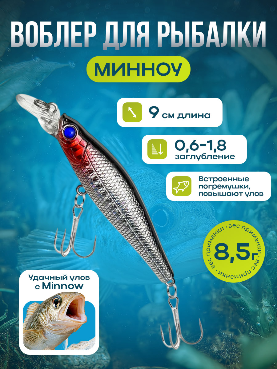 Наживка для дальнего заброса: суспендинговая приманка Minnow с гремящими бусинами, тройными крючками, 9 см, 8,5 г — это универсальное решение для рыбалки на дальние дистанции и в условиях переменной течения. Разработана для максимальной дальности заброса и стабильного поведения на разных слоях воды, что позволяет охватить широкий спектр хищников и условий ловли. Приманка выполнена в форме классического минноу, что обеспечивает естественное скольжение по воде с плавной и реалистичной игрой. Длина 9 см и вес 8,5 г оптимально сбалансированы для дальнего заброса и устойчивой проводки. Габариты позволяют приманке хорошо удерживаться на вертикальном слое воды при различных скоростях проводки, что особенно эффективно во время смены погодных условий и течения.