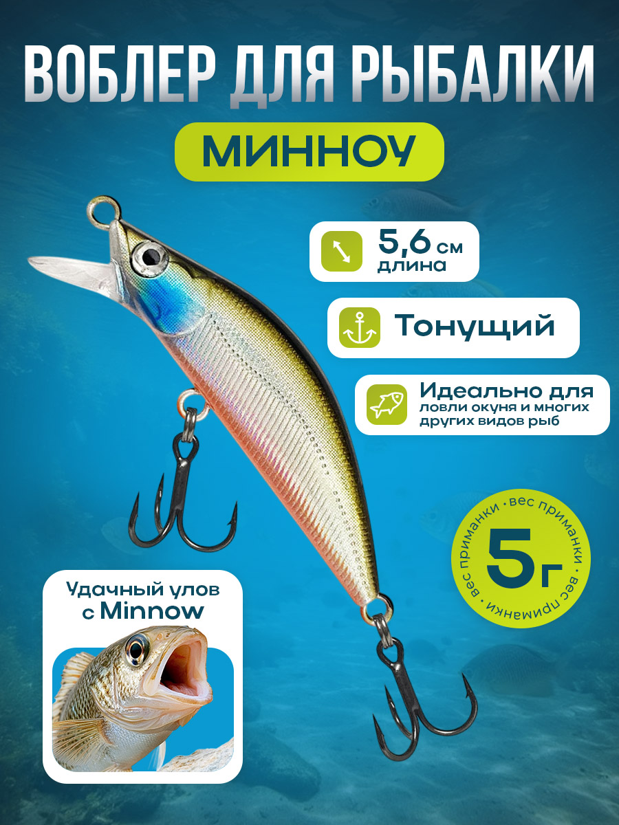 Воблер для рыбалки Minnow, тонущий, 5.6 см/5 г, черно-синяя