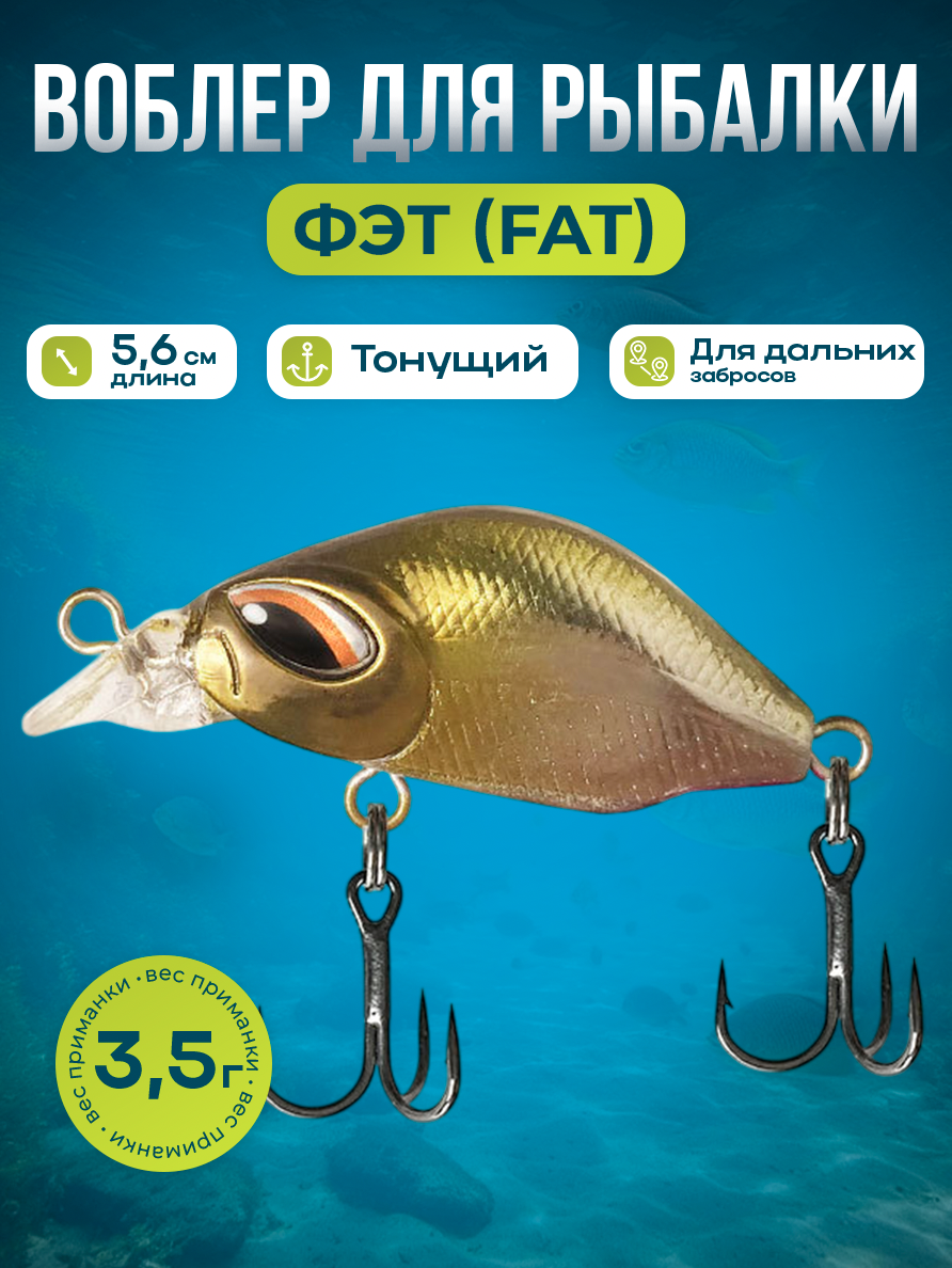 Воблер для рыбалки Фэт (Fat), тонущий, 4.2 см/3.5 г, золотистая