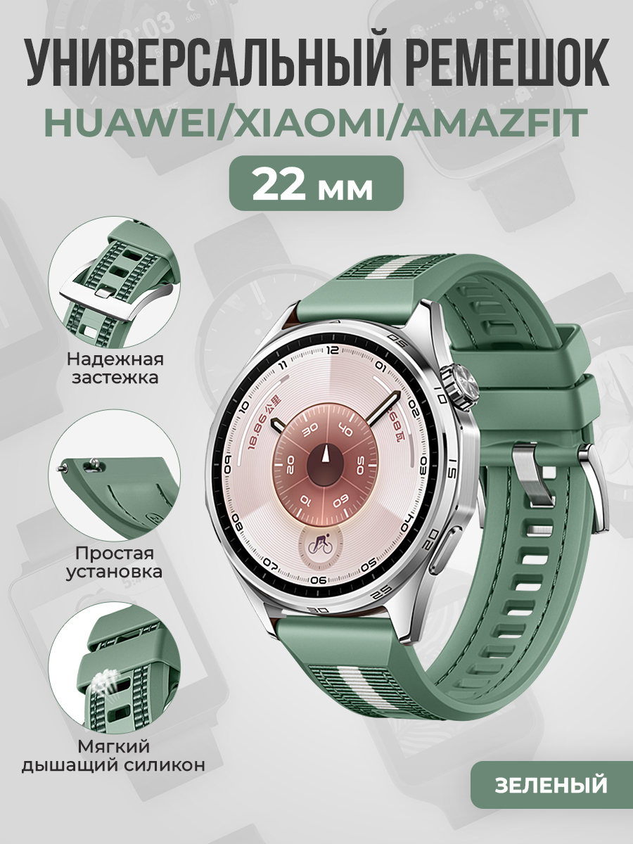 Универсальный силиконово-нейлоновый ремешок для Huawei Watch GT 6/Xiaomi Watch S4/Amazfit T-Rex 3 Pro, 22 мм, зеленый