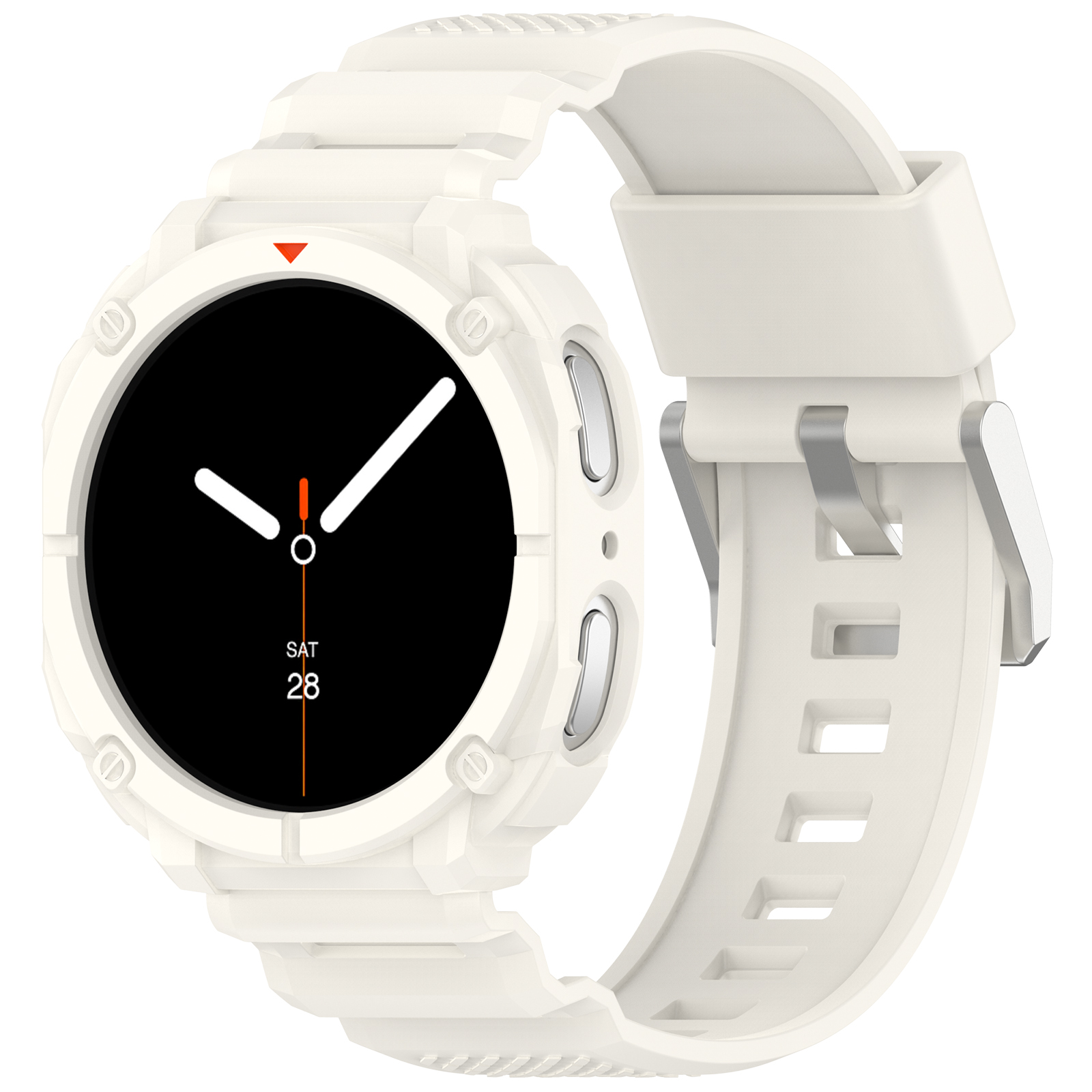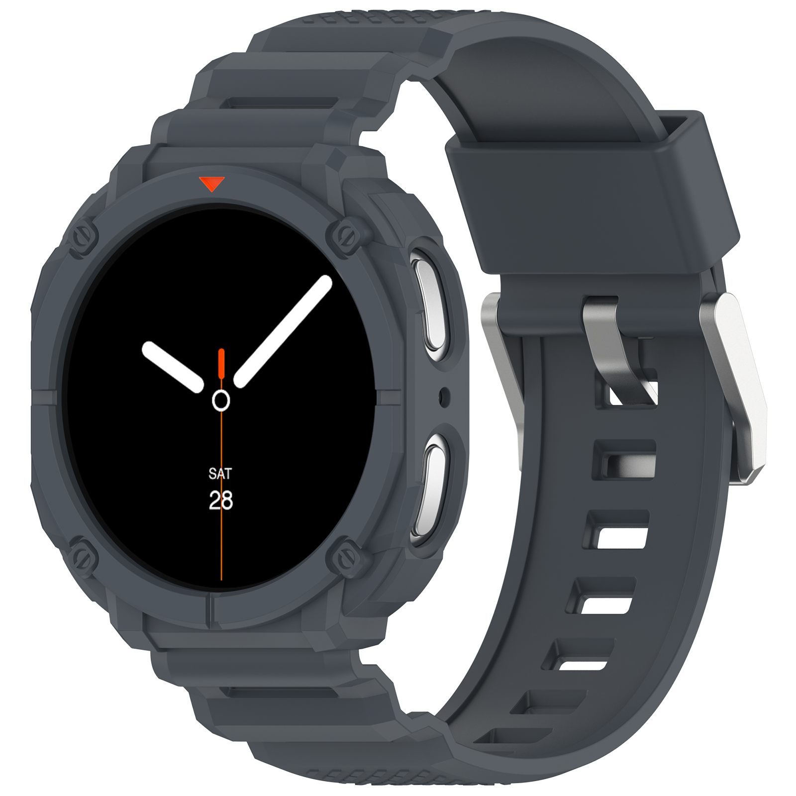 Силиконовый ремешок с бампером для Samsung Galaxy Watch 8, 40 мм — это практичное и функциональное решение для защиты и комфортного ношения умных часов в повседневной жизни. Samsung Galaxy Watch 8 ремешок изготовлен из качественного эластичного силикона, который отличается мягкостью, прочностью и устойчивостью к износу. Материал приятен на ощупь, не натирает кожу и подходит для длительного ношения в течение всего дня. Ребристая текстура ремешка Самунг Гелакси Вотч 8 придает аксессуару стильный внешний вид, делает его более выразительным и одновременно улучшает фиксацию на запястье, снижая скольжение при активных движениях. Встроенный бампер для Samsung Galaxy Watch 8, 40 мм надежно защищает корпус часов от царапин, потертостей и мелких ударов, сохраняя аккуратный внешний вид устройства. Текстурный ремешок гармонично сочетается с дизайном Samsung Galaxy Watch 8 40 мм и подчеркивает спортивный и современный стиль часов. Застежка на классическую пряжку обеспечивает надежную фиксацию и позволяет легко регулировать длину ремешка под индивидуальный размер запястья. Тренчики дополнительно фиксируют свободный конец ремешка Самунг Гелакси Вотч 8 40 мм, предотвращая его смещение и обеспечивая аккуратную посадку. Силиконовый ремешок с бампером устойчив к влаге, поту и загрязнениям, легко очищается и сохраняет привлекательный внешний вид даже при регулярном использовании. Такой аксессуар станет отличным выбором для тех, кто ценит комфорт, надежную защиту и практичный дизайн.