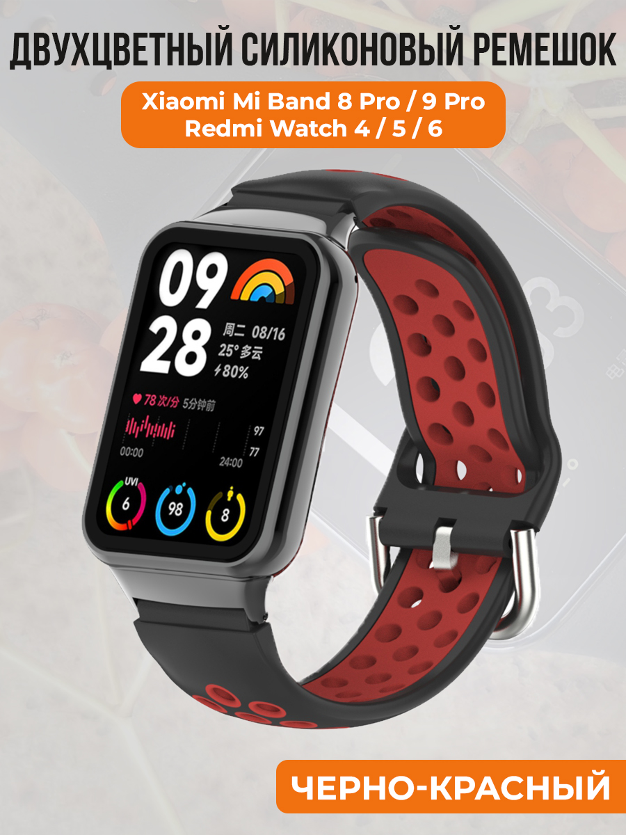 Двухцветный ремешок для Xiaomi Mi Band 8 Prо/9 Pro / Redmi Watch 4/5/6, черно-красный