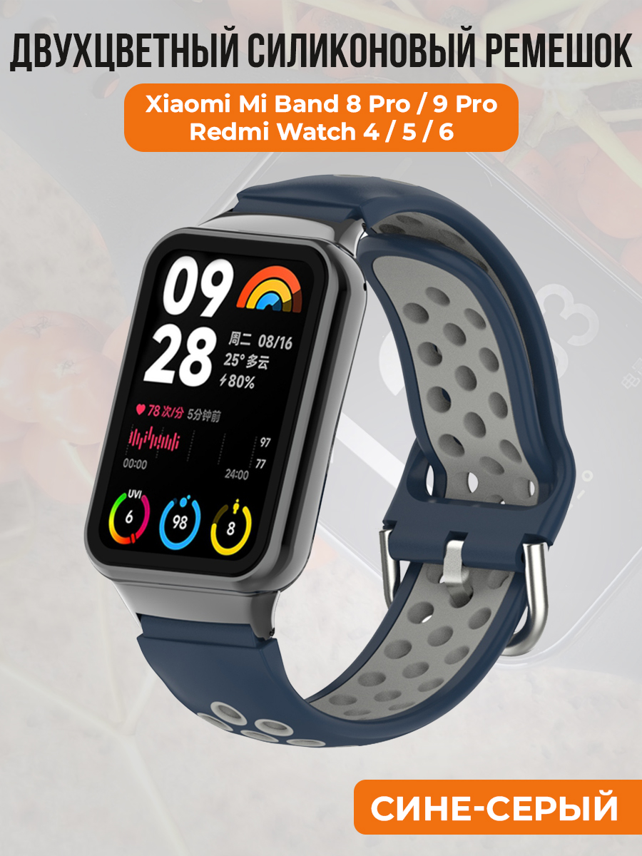 Двухцветный ремешок для Xiaomi Mi Band 8 Prо/9 Pro / Redmi Watch 4/5/6, сине-серый