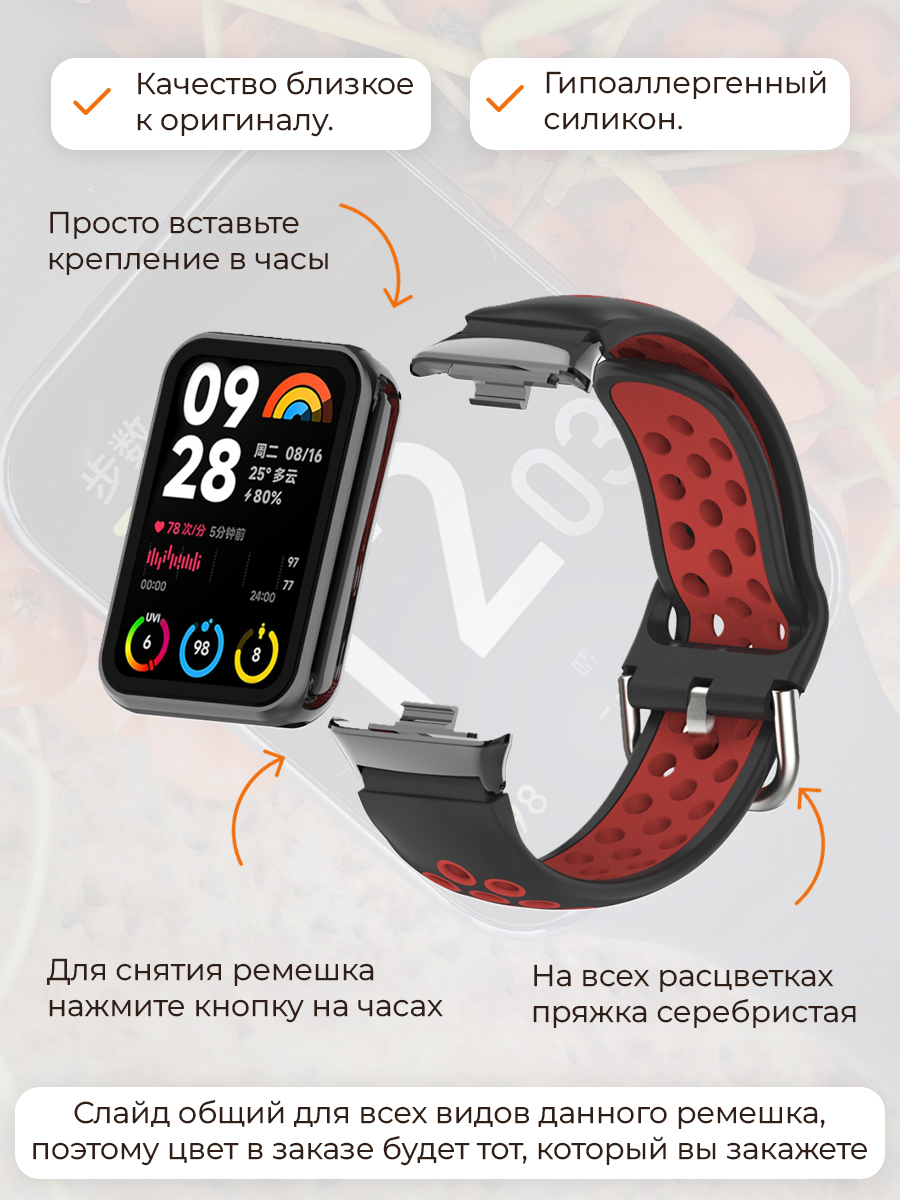 Сделанный из гипоаллергенного силикона, данный ремешок для mi band 8 pro обеспечивает комфорт даже при длительном ношении. Ремешок Редми вотч 4 легок, мягок и влагостойкий. Благодаря женскому ремешку ми бенд 9 про с перфорации по всему ремешку, ваш запястье сможет дышать, а интенсивные тренировки не станут причиной дискомфорта.