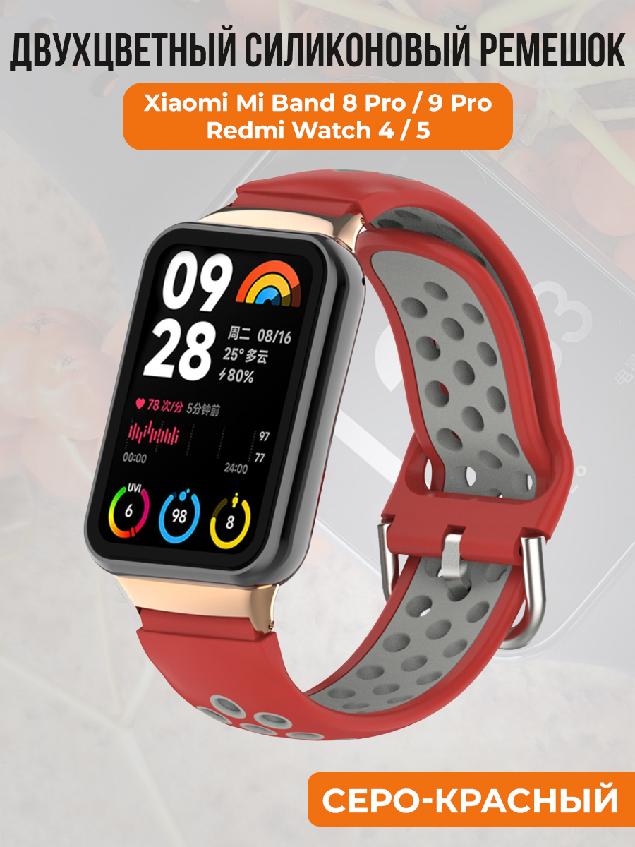 Двухцветный ремешок для Xiaomi Mi Band 8 Prо/9 Pro / Redmi Watch 4/5, серо-красный