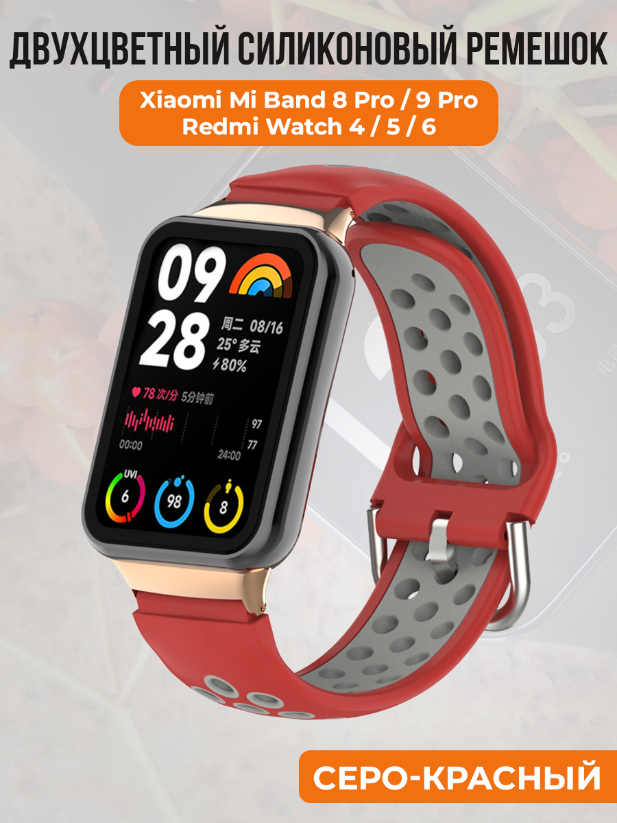Двухцветный ремешок для Xiaomi Mi Band 8 Prо/9 Pro / Redmi Watch 4/5/6, серо-красный