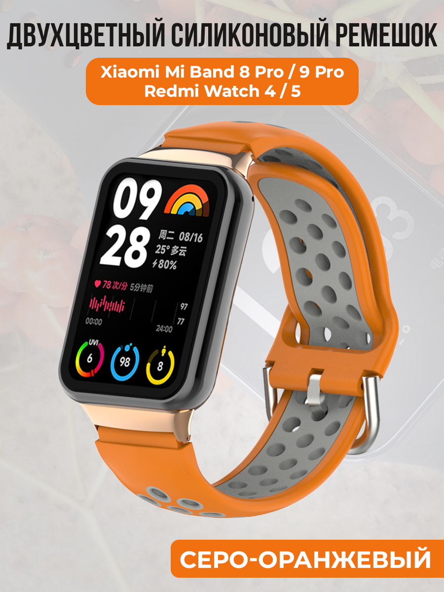 Двухцветный ремешок для Xiaomi Mi Band 8 Prо/9 Pro / Redmi Watch 4/5, серо-оранжевый