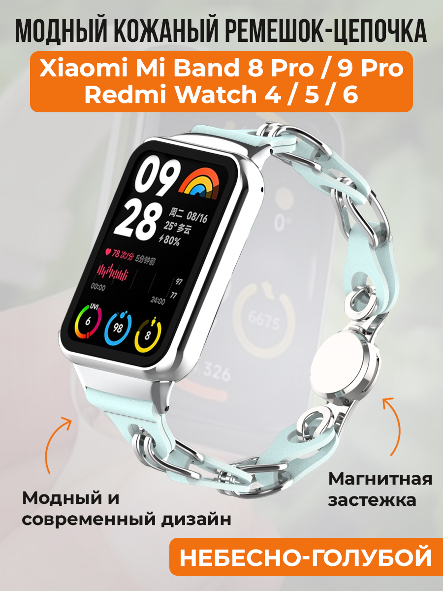 Модный кожаный ремешок цепочка для Xiaomi Mi Band 8 Pro/9 Pro и Redmi Watch 4/5/6, небесно-голубой