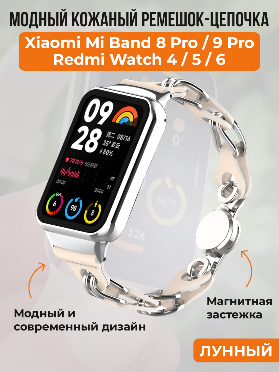 Модный кожаный ремешок цепочка для Xiaomi Mi Band 8 Pro/9 Pro и Redmi Watch 4/5/6, лунный