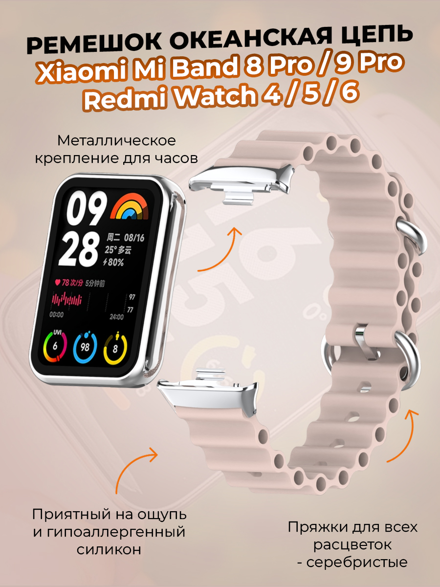 Ремешок океанская цепь для Xiaomi Mi Band 8 Pro/9 Pro и Redmi Watch 4/5/6, светло-розовый