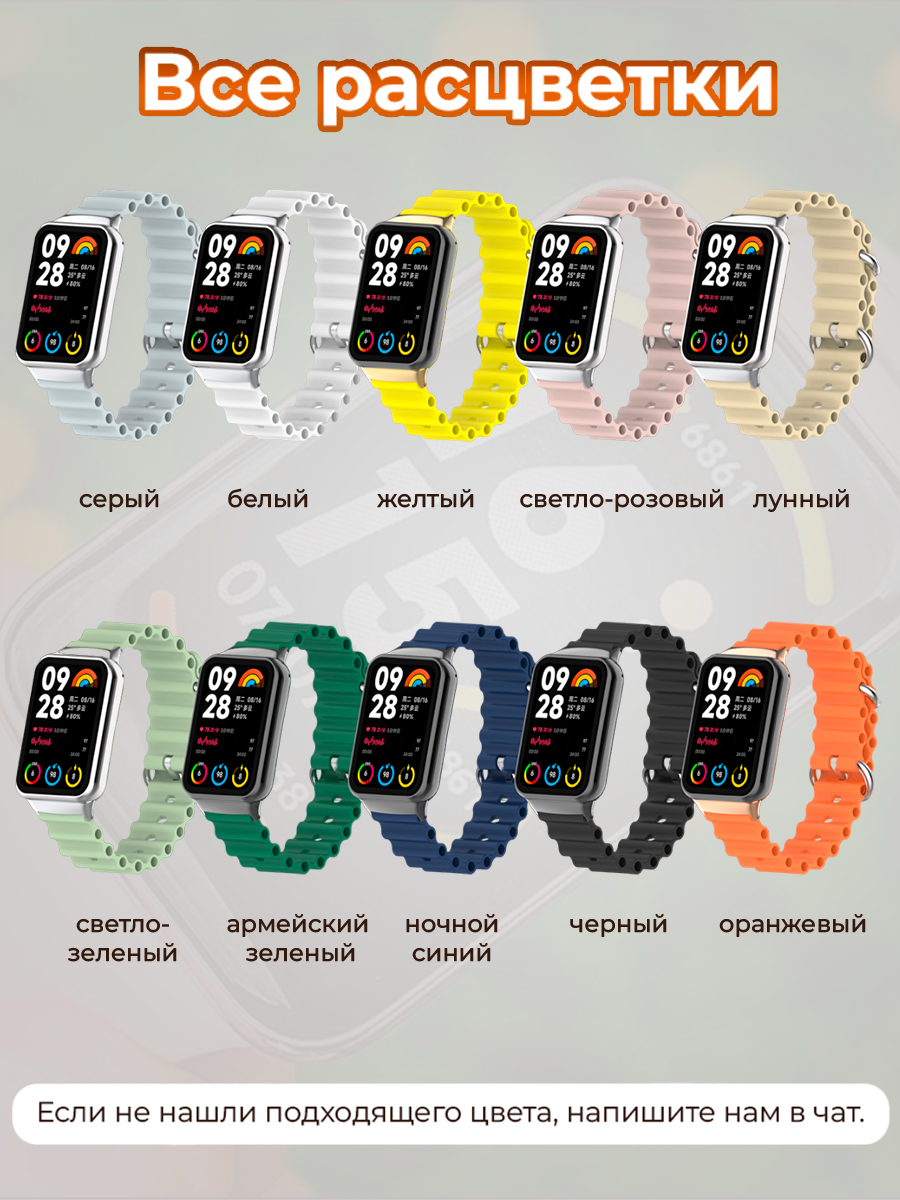 Представляем вашему вниманию ремешок океанская цепь для Xiaomi Mi Band 8 Pro / Xiaomi Mi Band 9 Pro / Redmi Watch 4 / Redmi Watch 5 / Redmi Watch 6 — идеальное сочетание стиля и функциональности для ваших смарт-часов. Этот mi band 8 pro ремешок выполнен из высококачественного гипоаллергенного силикона, что делает ремешок Redmi Watch 4 безопасным и комфортным для повседневного ношения. Ремешок Сяоми Ми Бенд 9 про идеально подходит для ежедневного использования, занятия спортом, фитнесом и sport active или повседневной носки.