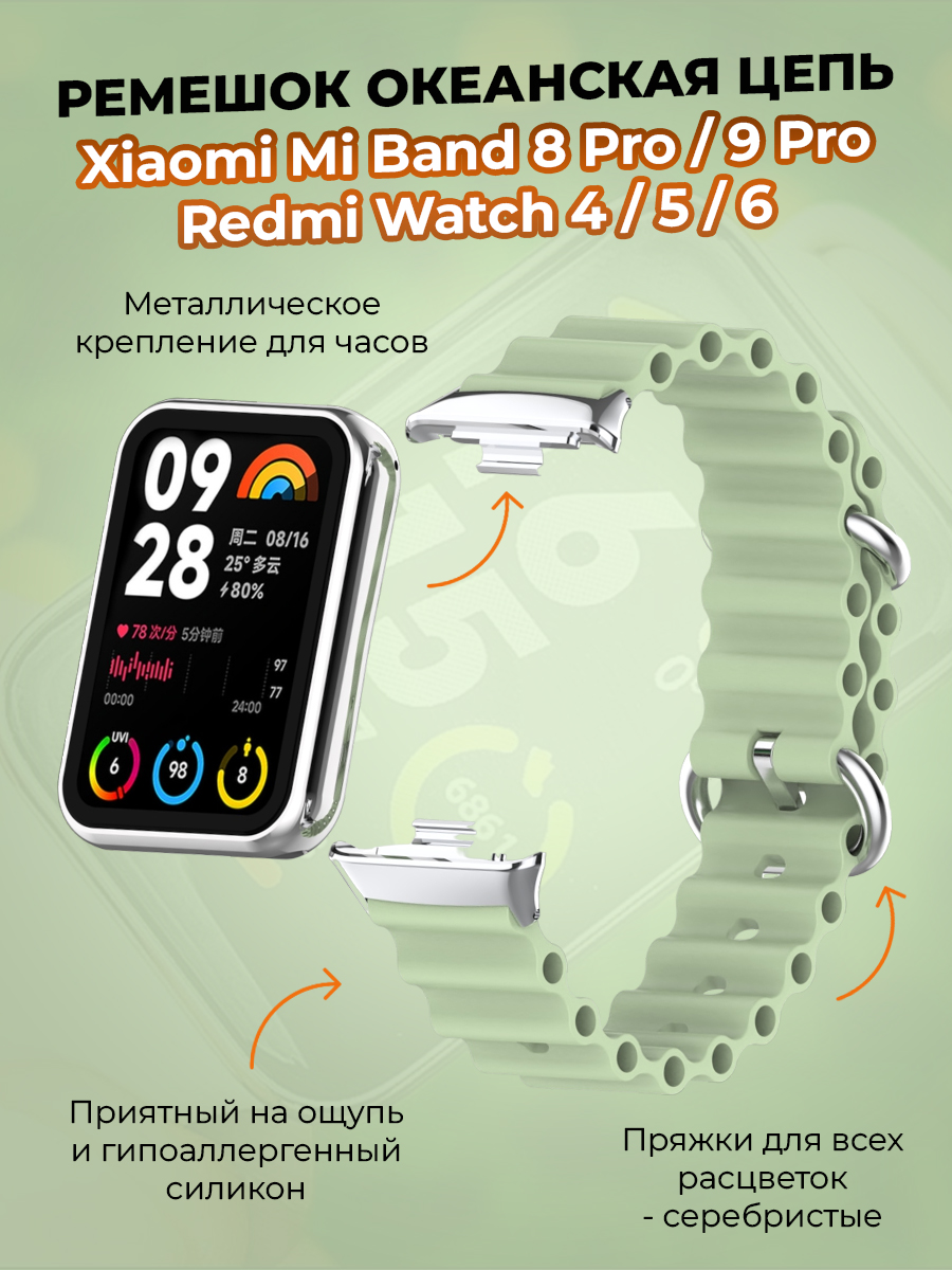 Ремешок океанская цепь для Xiaomi Mi Band 8 Pro/9 Pro и Redmi Watch 4/5/6, светло-зеленый