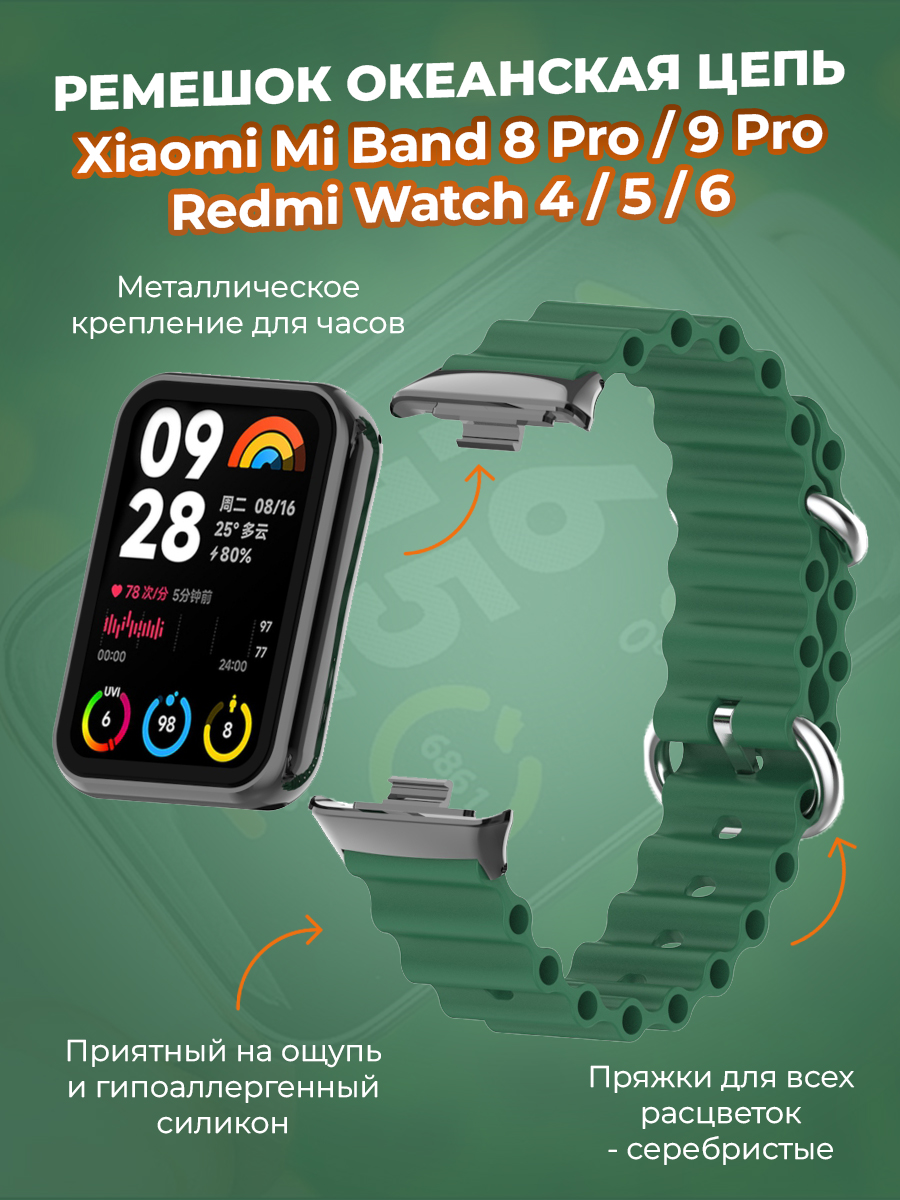 Ремешок океанская цепь для Xiaomi Mi Band 8 Pro/9 Pro и Redmi Watch 4/5/6, армейский зеленый