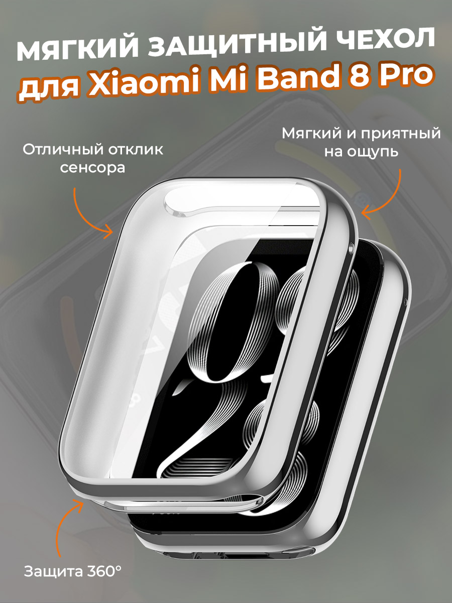 Защитный чехол-стекло для Xiaomi Mi Band 8 Pro, серебристый