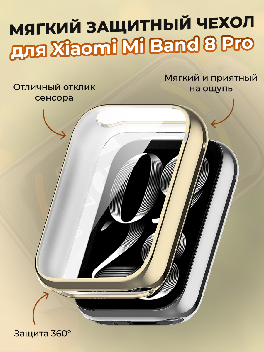 Защитный чехол-стекло для Xiaomi Mi Band 8 Pro, золотой